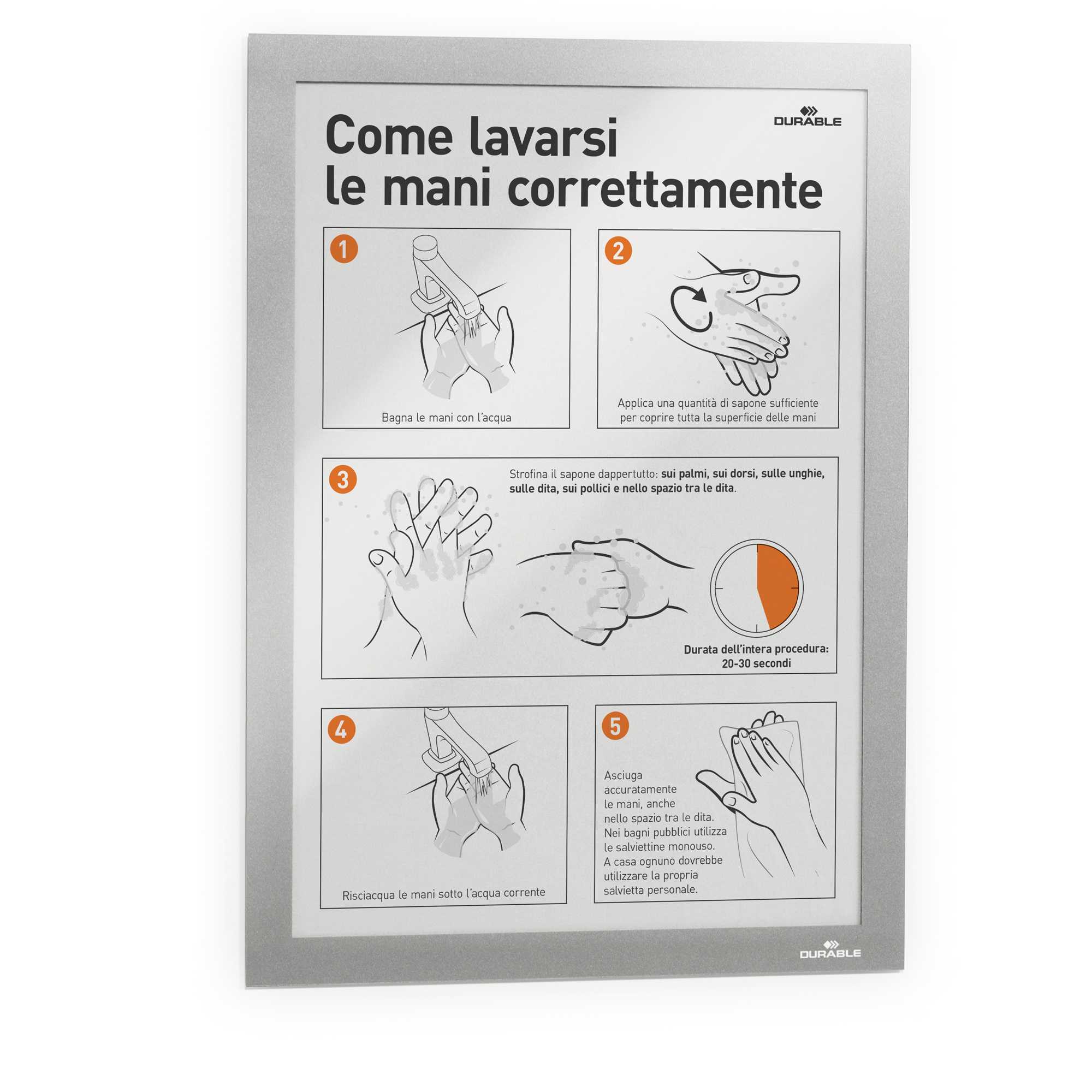 Cornice espositiva adesiva Duraframe® A4 21X29,7cm silver DURABLE Composto da 2