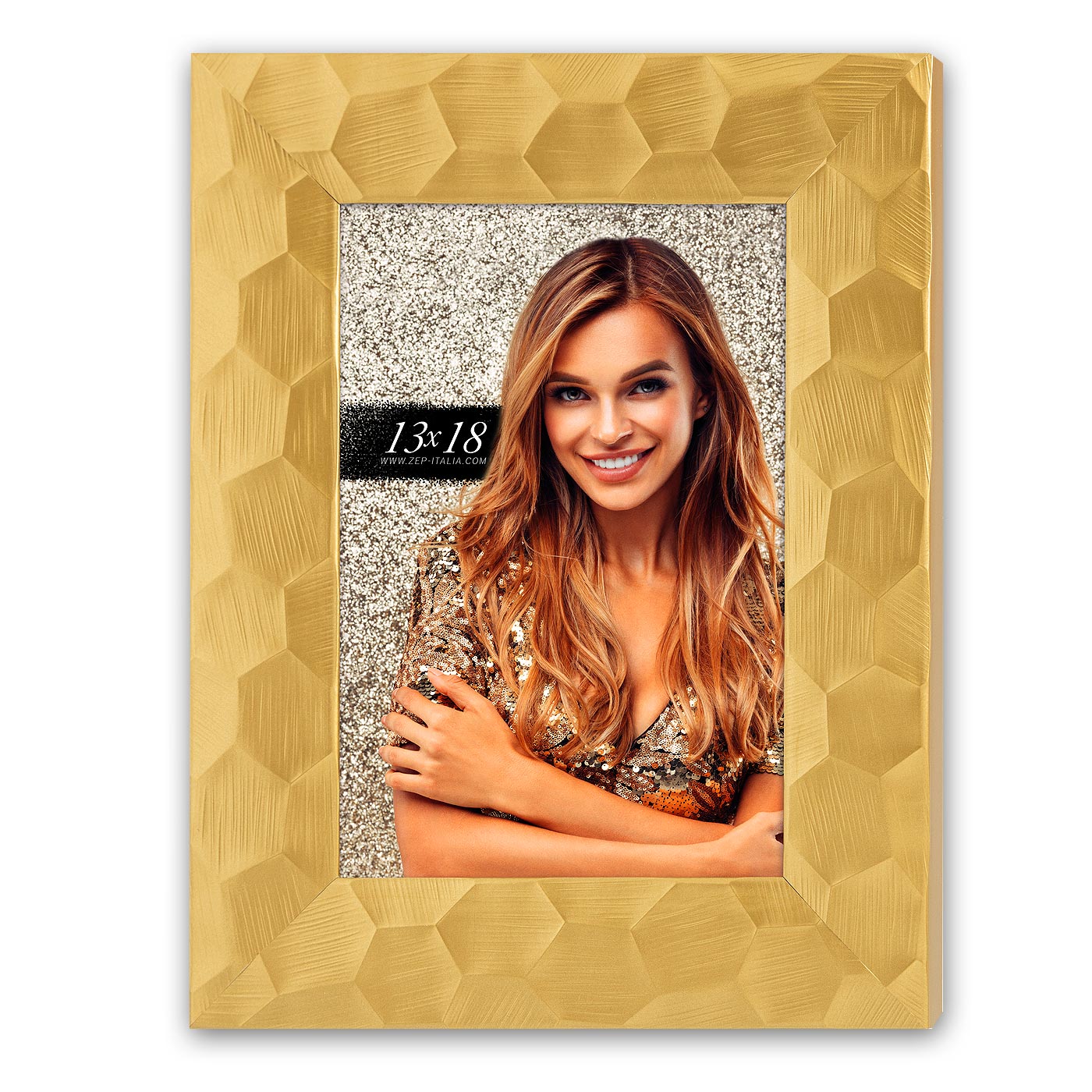 Cornice Gordon Gold in plastica, colore oro, profilo classico con decoro in 3D a motivo esagonale, da tavolo o da parete, disponibile in vari formati, adatta per casa e ufficio. Cornice in plastica MISURA FOTO (cm) 13x18 COLORE Oro SPESSORE CORNICE (cm) 1,7 MISURA ESTERNA (cm) 19,2 x 24,2 LARGHEZZA ASTA (cm) 3,8 PESO con scatola (gr) 345 ORIENTAMENTO IMMAGINE Verticale / orizzontale UTILIZZO Da tavolo e da parete RETRO Mdf PARTICOLARITA' Profilo classico con decoro in 3D a motivo esagonale PACKAGING Cellophan