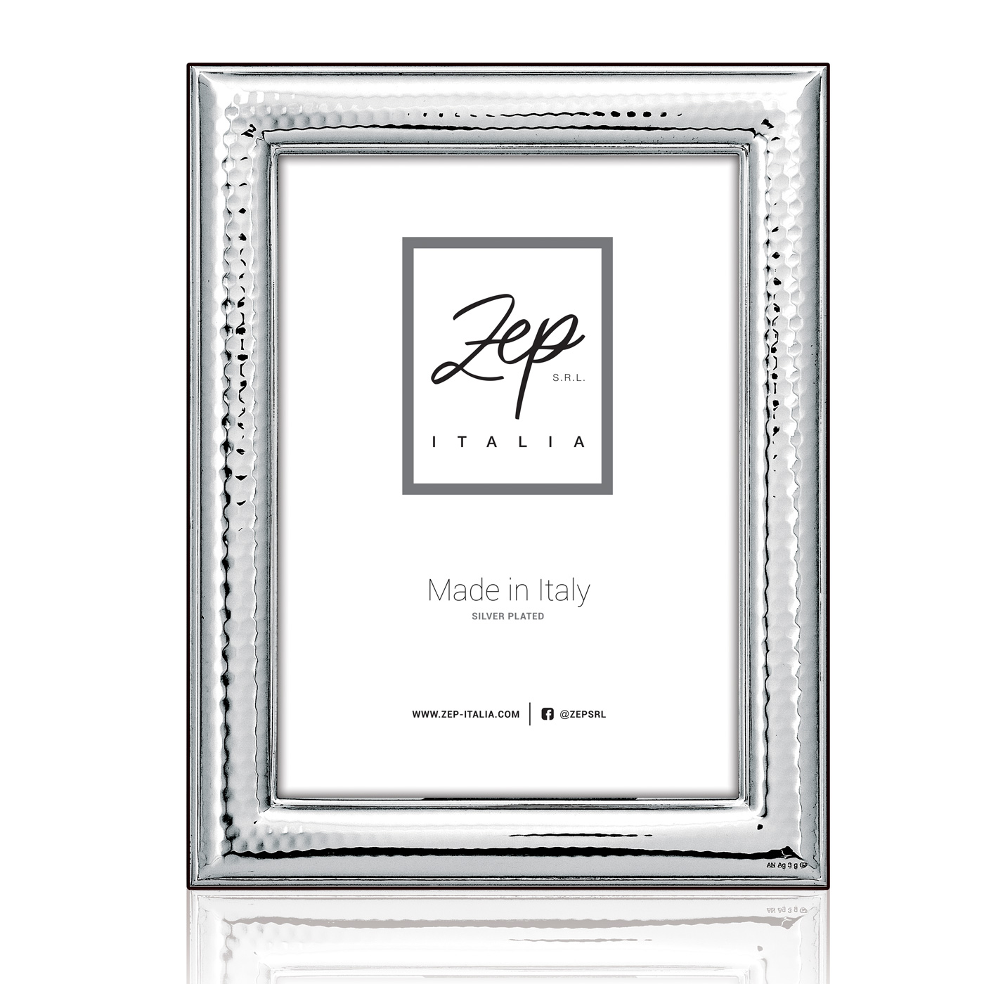 Cornice Recanati in metallo, prodotta in italia, con finitura silver plated lucida, profilo decorato a rilievo, effetto elegante e classico, retro in legno, da tavolo, disponibile in vari formati, ideale per celebrare anniversari o compleanni, adatta per regali preziosi o importanti.