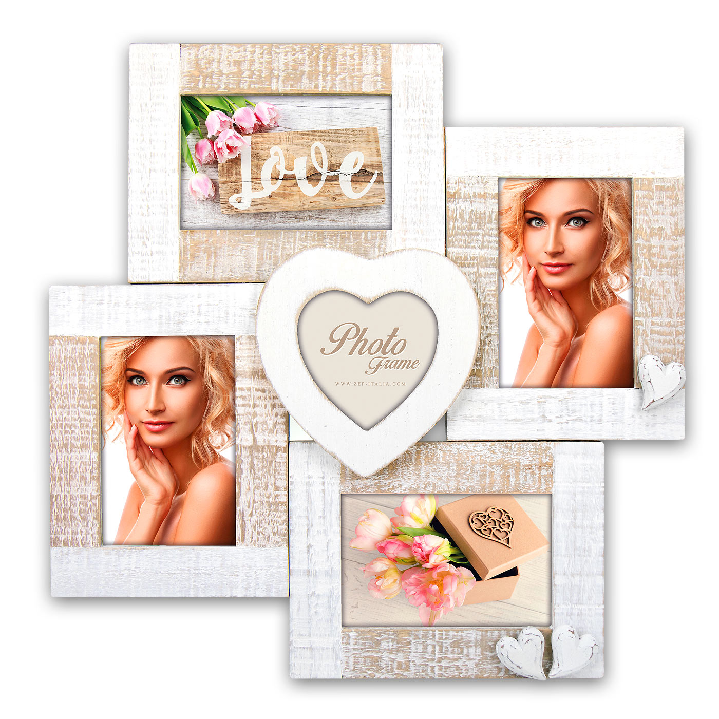 DESCRIZIONE Cornice Magnolia in legno, colore naturale e bianco vintage, multifoto da parete con cornici sovrapposte su vari livelli e decoro a forma di cuore in 3D, adatta al tema dell'amore. Cornice in legno MISURA FOTO (cm) 1x10x10 - 4x10x15 COLORE Bianco / marrone SPESSORE CORNICE (cm) 1,5 MISURA ESTERNA (cm) 42 x 42 LARGHEZZA ASTA (cm) 3,5 MISURA ESTERNA (cm) C/SCATOLA 43,5 x 43,5 x 2,8 PESO con scatola (gr) 1100 ORIENTAMENTO IMMAGINE Verticale / orizzontale UTILIZZO Da parete RETRO Mdf PARTICOLARITÀ Decorazioni in rilievo, rifinitura cornice effetto vintage PACKAGING Vassoio in cartone