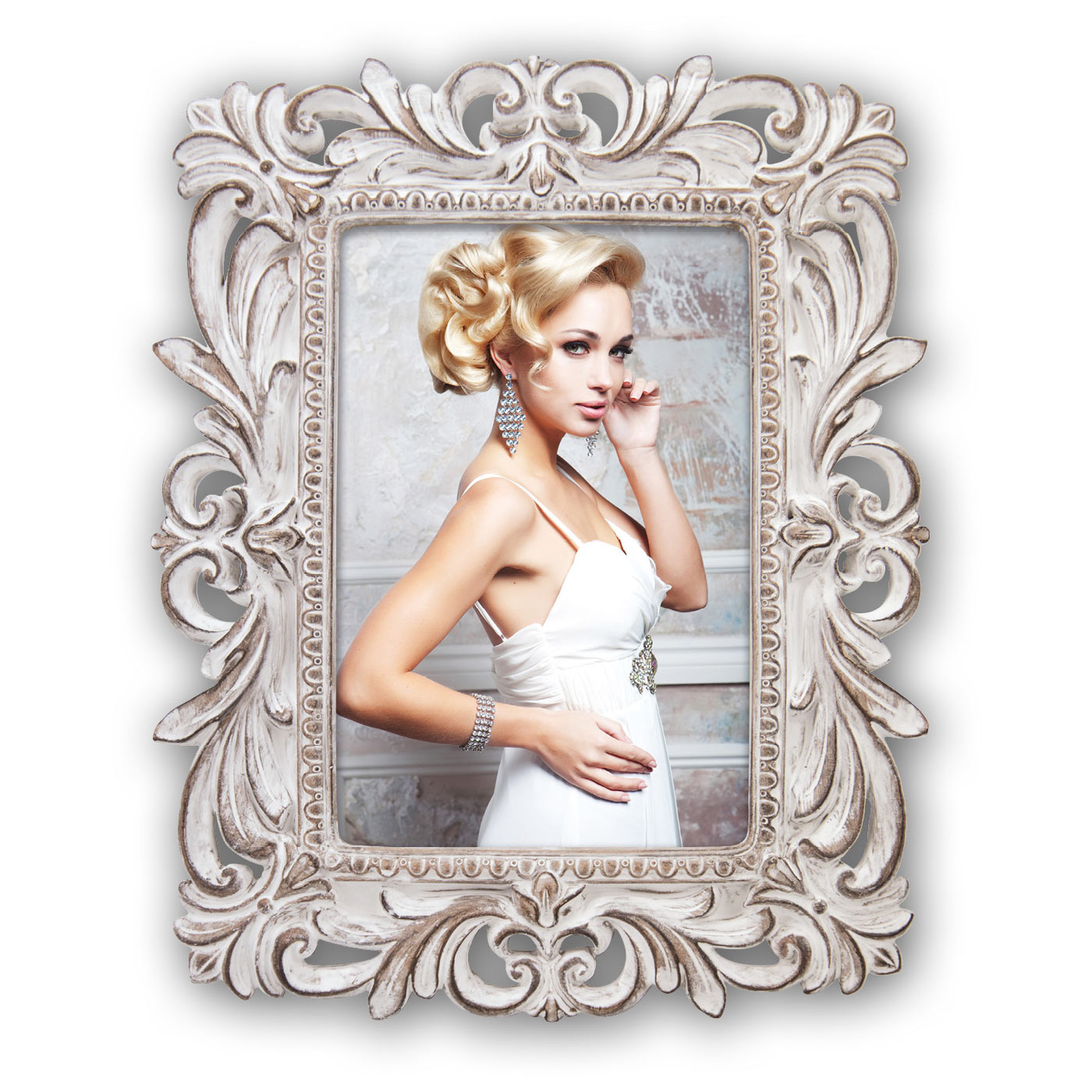 Cornice Roubaix in resina, colore bianco e marrone, effetto anticato, decoro a rilievo classico, profilo intagliato, effetto elegante e classico, da tavolo, disponibile in vari formati, ideale per celebrare anniversari e compleanni, adatta per regali preziosi o importanti. Cornice in resina MISURA FOTO (cm) 10x15 COLORE Bianco / marrone SPESSORE CORNICE (cm) 1,8 MISURA ESTERNA (cm) 17 x 21 LARGHEZZA ASTA (cm) 3,8 MISURA EST. (cm) C/SCATOLA 20 x 24,2 x 4,2 PESO con scatola (gr) 405 ORIENTAMENTO IMMAGINE Verticale / orizzontale UTILIZZO Da tavolo RETRO Mdf PARTICOLARITÀ Effetto anticato, decoro a rilievo classico, profilo intagliato PACKAGING Scatola