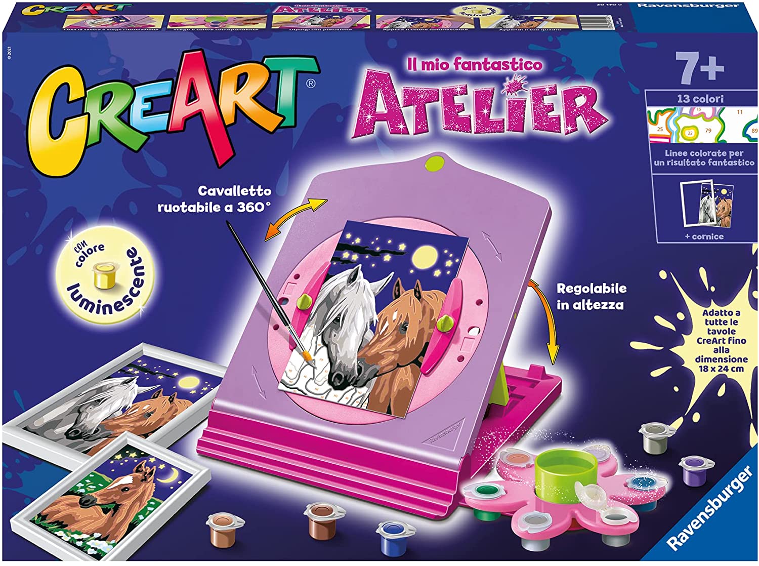Con il kit Creart di Ravensburger, i bambini imparano a colorare le diverse immagini con cura ed attenzione, migliorando così il proprio talento artistico e sviluppando abilità motorie. Alla fine, proveranno un senso di gioia, di orgoglio e soddisfazione che li stimolerà a voler continuare a dipingere. Sono previsti tre diversi livelli di difficoltà: si passa da immagini semplici con pochi spazi da colorare di grandi dimensioni, fino ad arrivare ad immagini con spazi piccoli per i più esperti.