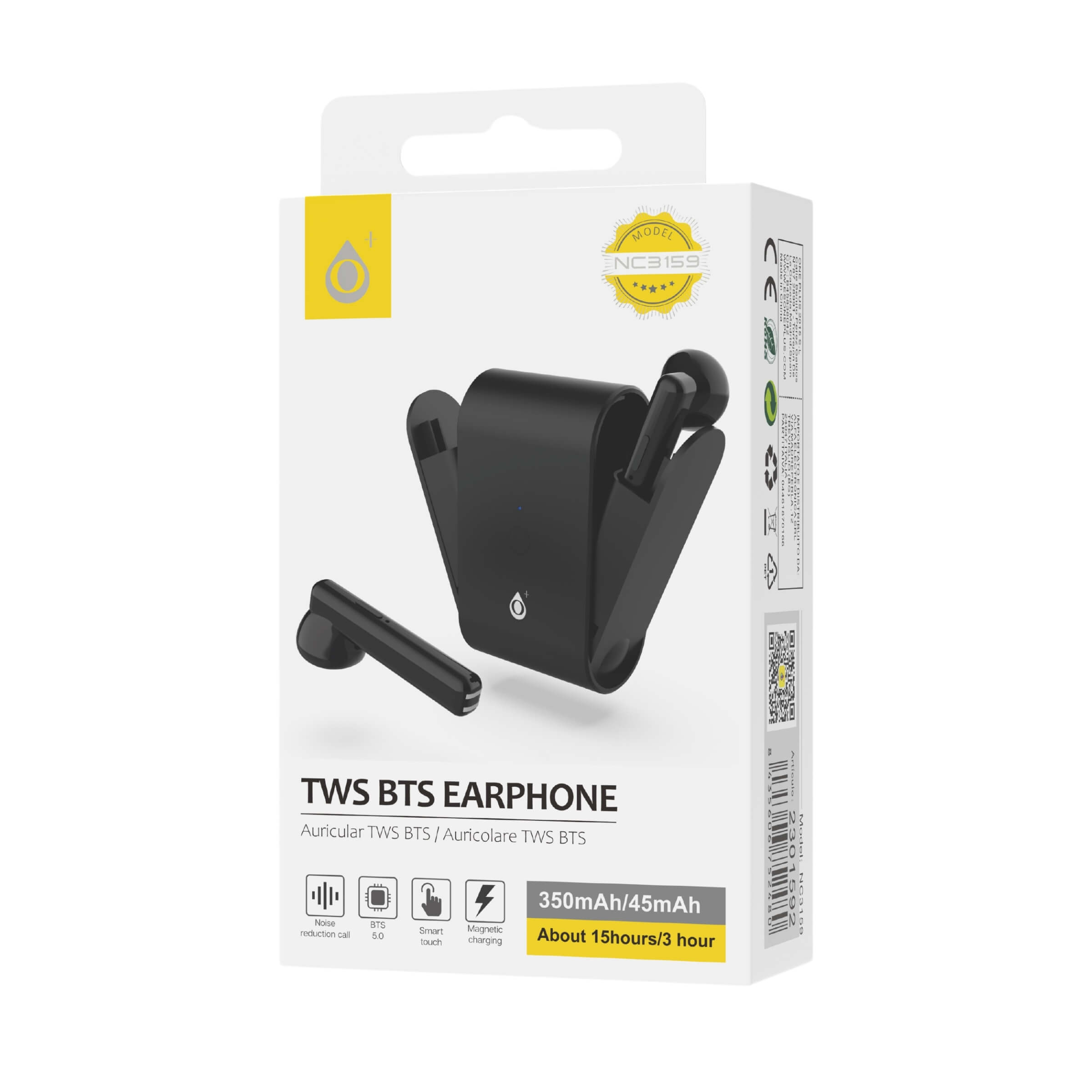 Le cuffie Bluetooth One Plus TWS Purse Touch NC3159 offrono una combinazione di eleganza e funzionalità avanzate, ideali per chi cerca prestazioni audio elevate e un design raffinato. Dotate di tecnologia Bluetooth 5.0 e funzione touch multifunzione, queste cuffie garantiscono un'esperienza d'uso comoda e intuitiva.• Bluetooth 5.0: Connessione stabile e veloce, per una qualità audio cristallina senza interruzioni.• Funzione Hands-free: Grazie alla tecnologia True Wireless Stereo, le chiamate sono nitide e senza disturbi, per una comunicazione efficiente anche in movimento.• Batteria potente: Ogni auricolare ha una batteria integrata da 45 mAh che garantisce fino a 3 ore di riproduzione continua. La custodia ricaricabile da 350 mAh consente di prolungare l'autonomia per un totale di circa 15 ore.• Riduzione del rumore: Tecnologia di riduzione del rumore integrata per ascoltare musica o fare chiamate in ambienti rumorosi con la massima chiarezza.• Smart Touch: Il sistema touch consente di controllare facilmente la musica, le chiamate e l'assistente vocale con un semplice tocco, senza bisogno di estrarre il telefono.• Ricarica magnetica: La custodia con ricarica magnetica assicura un alloggiamento sicuro e una ricarica rapida e facile per gli auricolari.• Caratteristiche tecniche avanzate:Impedenza: 16 OhmFrequenza: 20 Hz - 20 kHzSensibilità: 98 dB +- 3 dBTempo di ricarica: Solo 1.5 ore per una ricarica completa.• Certificazioni di sicurezza: Conforme agli standard CE, RoHS e FCC, per garantire la massima sicurezza e affidabilità durante l'uso.Gli auricolari One Plus NC3159 sono la scelta ideale per chi desidera un accessorio all'avanguardia, con un design compatto e funzionalità intelligenti, perfetto per chi è sempre in movimento.