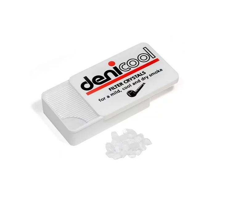 Filtri in Cristalli Metti dei cristalli sul fondo della ciotola della pipa, quindi riempila di tabacco come al solito. Dopo aver gustato il fumo svuotare la pipa insieme ai cristalli. Denicool avrà cambiato il suo colore in marrone scuro perché è saturo di condensa. Ciò dimostra la sua elevata efficienza come assorbente. I cristalli del filtro Denicool assicurano un fumo fresco, mite e secco. Riducono il catrame e la nicotina e assorbono l'umidità aggiuntiva mantenendo il sapore del tabacco.