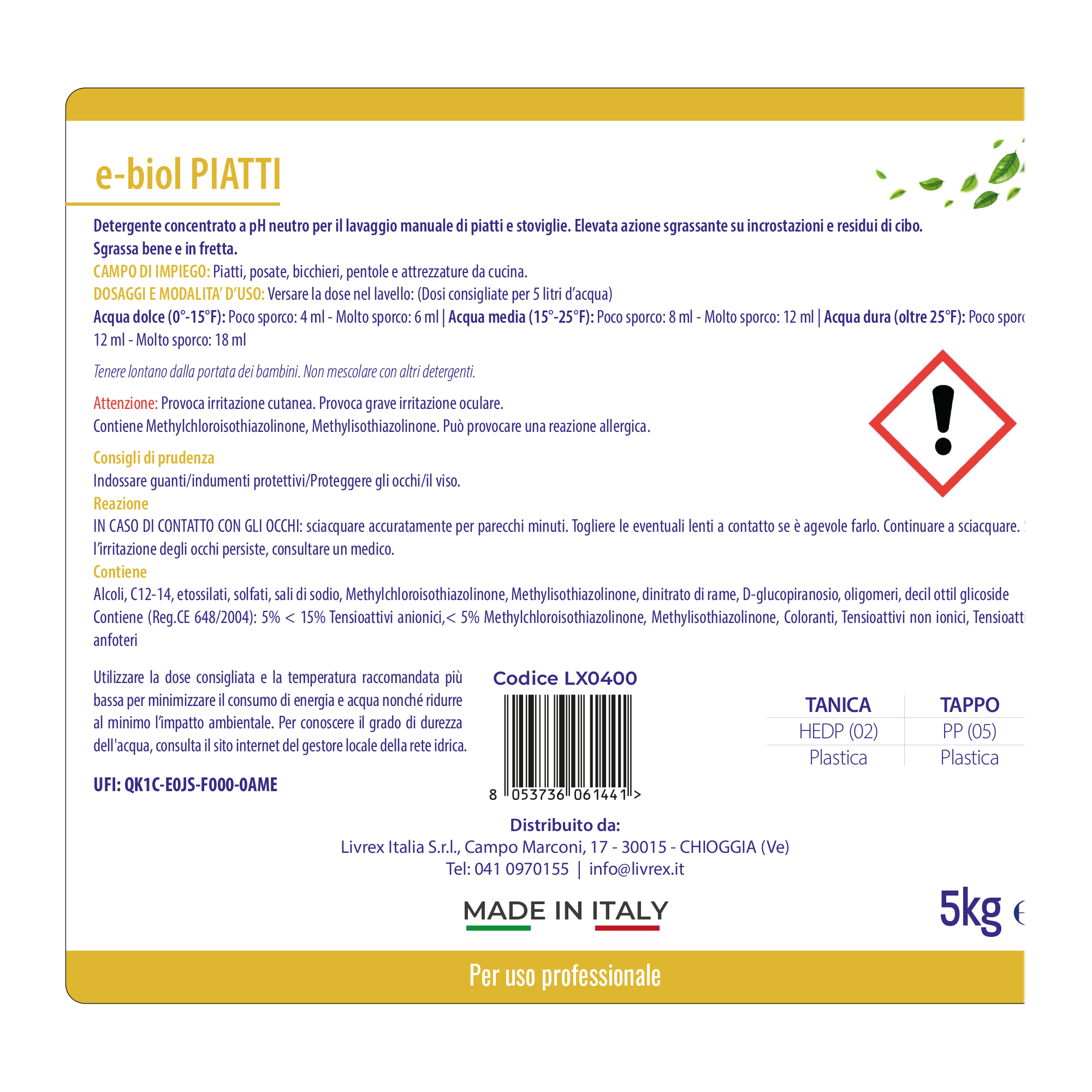 Detersivo piatti Ebiol tanica 5kg Livrex