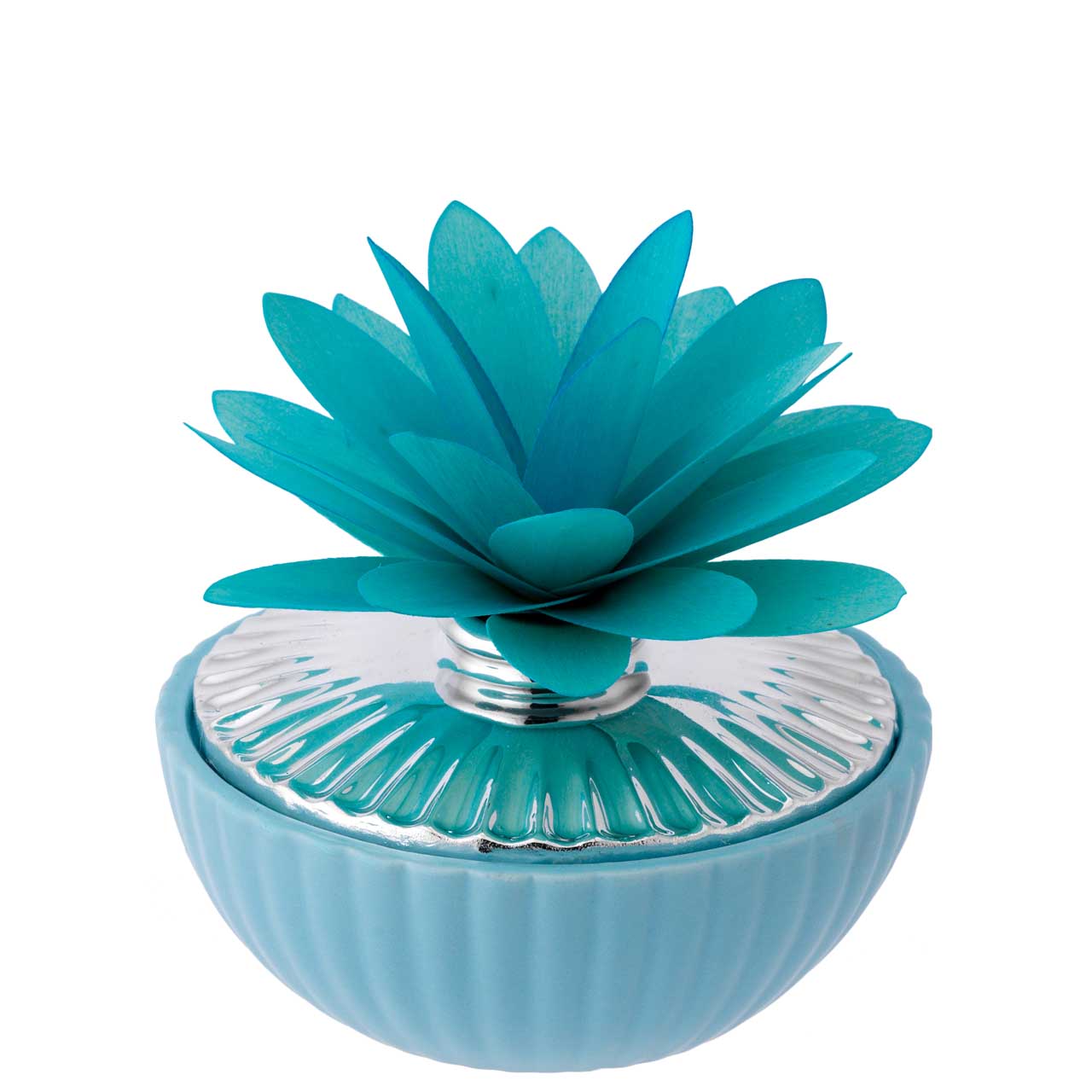 Il diffusore Dalia mezza sfera bicolore azzurro con fiore in legno tropicale è pensato per portare negli ambienti un senso di equilibrio visivo e una profumazione costante e naturale. La forma a mezza sfera, elegante e armoniosa, è arricchita da una finitura bicolore che unisce tonalità morbide dell’azzurro, creando un oggetto decorativo capace di valorizzare qualsiasi spazio. Il fiore in legno tropicale, lavorato con petali sottili e porosi, assorbe la fragranza inclusa e la rilascia gradualmente, diffondendo un profumo piacevole e uniforme senza bisogno di interventi o manutenzione. È un diffusore ideale per camere da letto, ingressi, soggiorni e angoli relax, grazie alla sua presenza discreta e alla capacità di arredare con semplicità. Ogni articolo è confezionato all’interno di una scatola regalo che aggiunge valore e lo rende perfetto anche come dono elegante e già pronto all’uso.