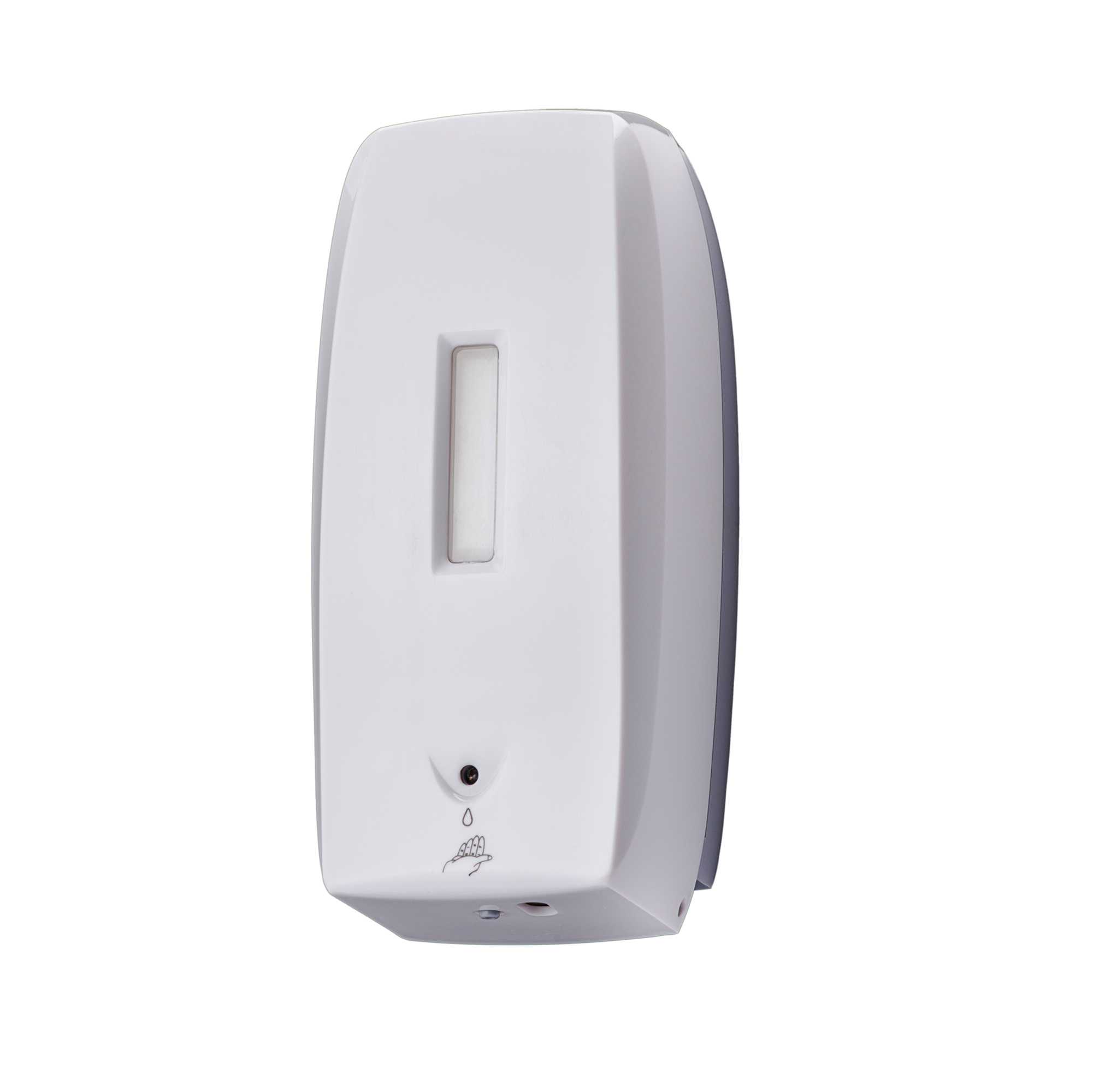 DISTRIBUTORE AUTOMATICO DI SAPONE LIQUIDO / GEL IGIENIZZANTE. BASE IN ABS GRIGIO E COVER IN ABS BIANCO. TANICA IN PLASTICA A RIEMPIMENTO DA 0,5LITRI. PER TUTTI I TIPI DI SAPONE (NO MICROGRANULI) O GEL IGIENIZZANTE. SISTEMA DI EROGAZIONE AUTOMATICA DA 0,9ML CON SENSORE A INFRAROSSI. ALIMENTAZIONE: 4 PILE DA 1,5 V ALCALINE AA (NON COMPRESE). FINESTRA PER IL CONTROLLO DEL LIVELLO DEL SAPONE. CHIUSURA CON CHIAVE IN PLASTICA. VITERIA INCLUSA. PULIZIA PERIODICA DA EFFETTUARE CON UN PANNO MORBIDO E NON ABRASIVO, I