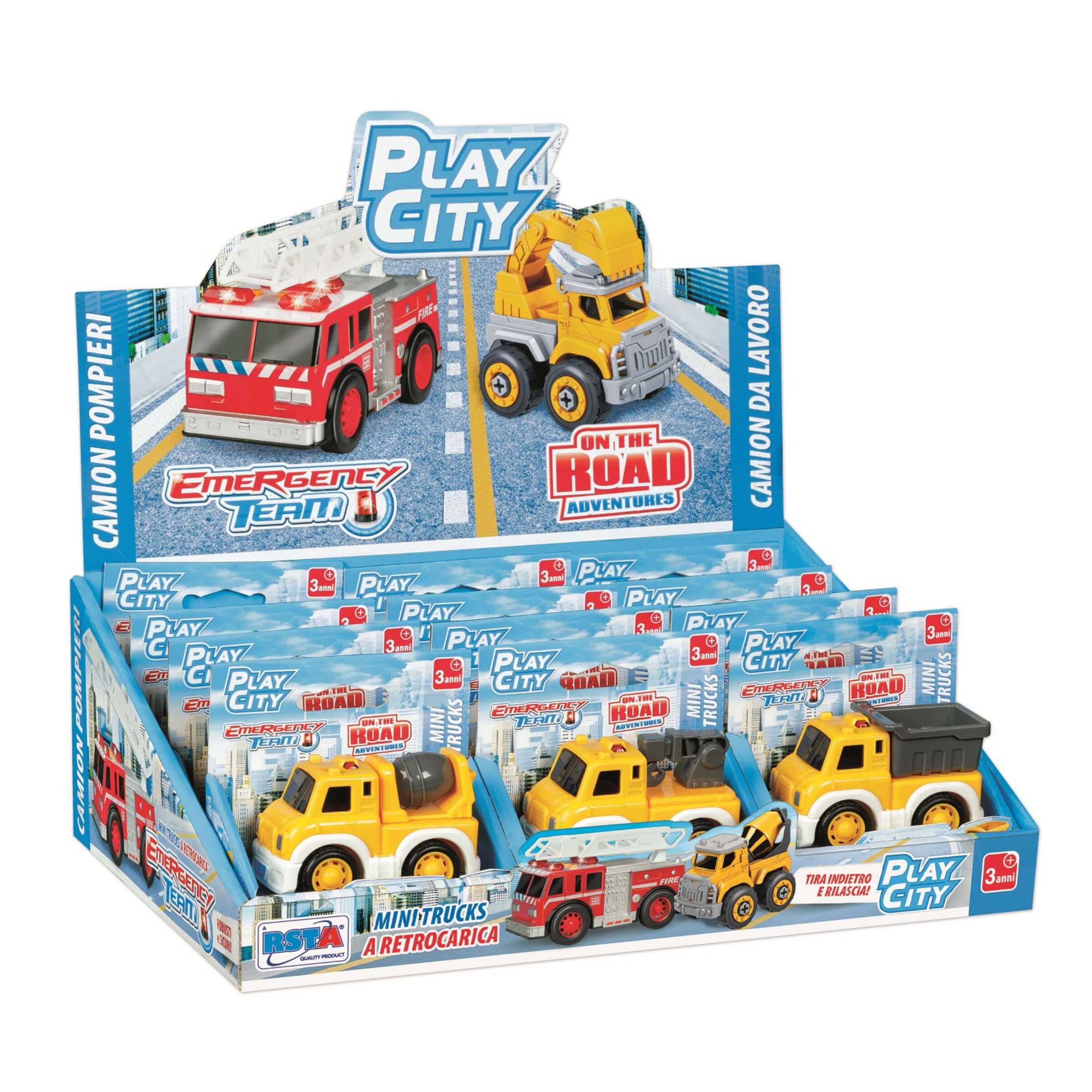 Il Display Camioncini Retrocarica On The Road è il giocattolo perfetto per i piccoli appassionati di veicoli da lavoro e avventure cittadine. Questo set comprende 12 camioncini assortiti, ognuno dotato di funzioni interattive che rendono il gioco dinamico e coinvolgente.• Funzione a Retrocarica: Ogni camioncino è dotato di un meccanismo a retrocarica che consente di farlo muovere in avanti tirandolo indietro e rilasciandolo. Questa funzione rende il gioco semplice e intuitivo, ideale per bambini di tutte le età.• Design Realistico: I camioncini sono disponibili in vari modelli, tra cui camion dei pompieri, autocarri da lavoro e altro. Ogni veicolo è progettato con dettagli accurati che imitano i veri camion da lavoro, rendendo il gioco ancora più coinvolgente.• Materiali Resilienti: Realizzati in plastica di alta qualità, questi camioncini sono progettati per resistere agli urti e all'usura del gioco quotidiano. La costruzione robusta garantisce una lunga durata e sicurezza durante il gioco.• Dimensioni Compatte: Le dimensioni compatte dei camioncini li rendono facili da maneggiare per i bambini e perfetti per essere portati ovunque. Ideali per giocare a casa, all'aperto o in viaggio.• Collezione Assortita: Questo display include 12 camioncini in diversi colori e modelli, offrendo ai bambini la possibilità di collezionarli tutti e di creare emozionanti avventure stradali. Ogni veicolo ha un design unico che stimola la fantasia dei bambini.Il Display Camioncini Retrocarica On The Road è un regalo fantastico per i bambini dai 3 anni in su. Con il suo design realistico e le funzionalità interattive, offre ore di divertimento e sviluppo delle abilità motorie. Perfetto per stimolare la passione per i veicoli da lavoro e le avventure urbane.