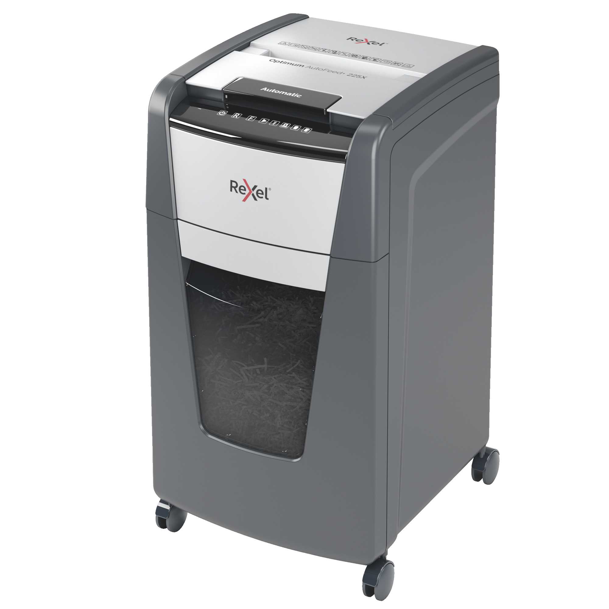 IL DISTRUGGIDOCUMENTI OPTIMUM AUTOFEED+ 225X CON TAGLIO A FRAMMENTI DISTRUGGE AUTOMATICAMENTE FINO A 225 FOGLI A4 (80 GR/MQ) ALLA VOLTA, CON UN LIVELLO DI SICUREZZA P-4 (4X25MM). QUESTO DISTRUGGIDOCUMENTI AUTOMATICO PUO' ESSERE UTILIZZATO SIA A CASA SIA IN UFFICIO GRAZIE AL SUO CESTINO COMPATTO DA 60 LITRI. NON E' NECESSARIO ALIMENTARE MANUALMENTE LA CARTA O RIMUOVERE PRIMA I PUNTI E LE GRAFFETTE, QUESTO DISTRUGGIDOCUMENTI AUTOMATICO FARA' TUTTO IL LAVORO PER TE.