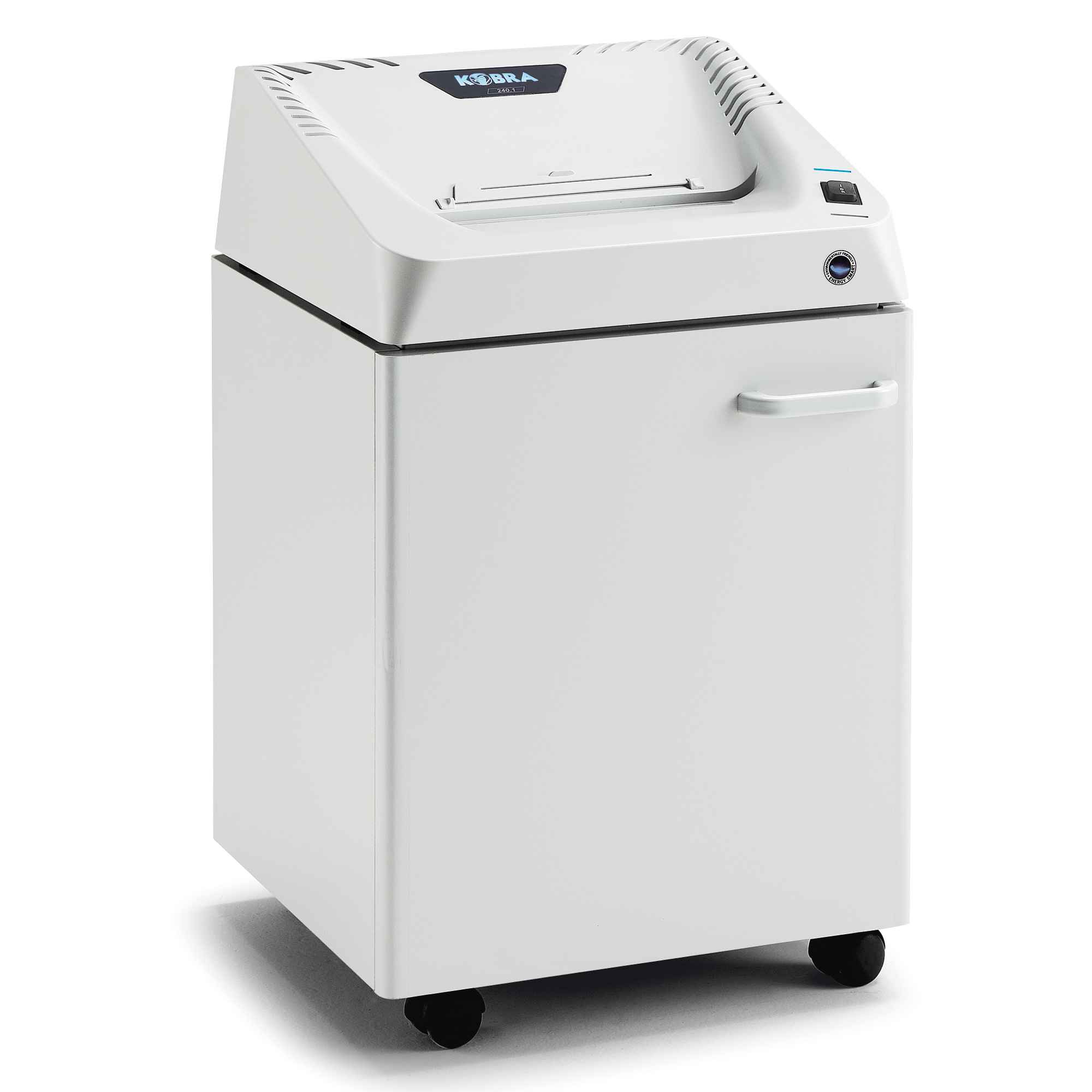 DISTRUGGIDOCUMENTI A STRISCIA CON ROBUSTA TRASMISSIONE A CATENA CON INGRANAGGI IN ACCIAIO. COLTELLI IN ACCIAIO TEMPRATO AD ALTO TENORE DI CARBONIO, NON DANNEGGIABILI DA GRAFFETTE E PUNTI METALLICI: SPECIALI PROFILI ELEVANO LA CAPACITA' DISTRUTTIVA, PUR MANTENENDO BASSI CONSUMI ELETTRICI. MOTORE CON PROTEZIONE TERMICA CAPACE DI FUNZIONARE 24 ORE SU 24 SENZA SURRISCALDARSI. KOBRA 240.1 S4 DISTRUGGE FINO A 26 FOGLI PER VOLTA, CD/DVD, CARTE DI CREDITO E FLOPPY-DISKS. DOTATO DI SISTEMA ENERGY SMART PER LA SALVA