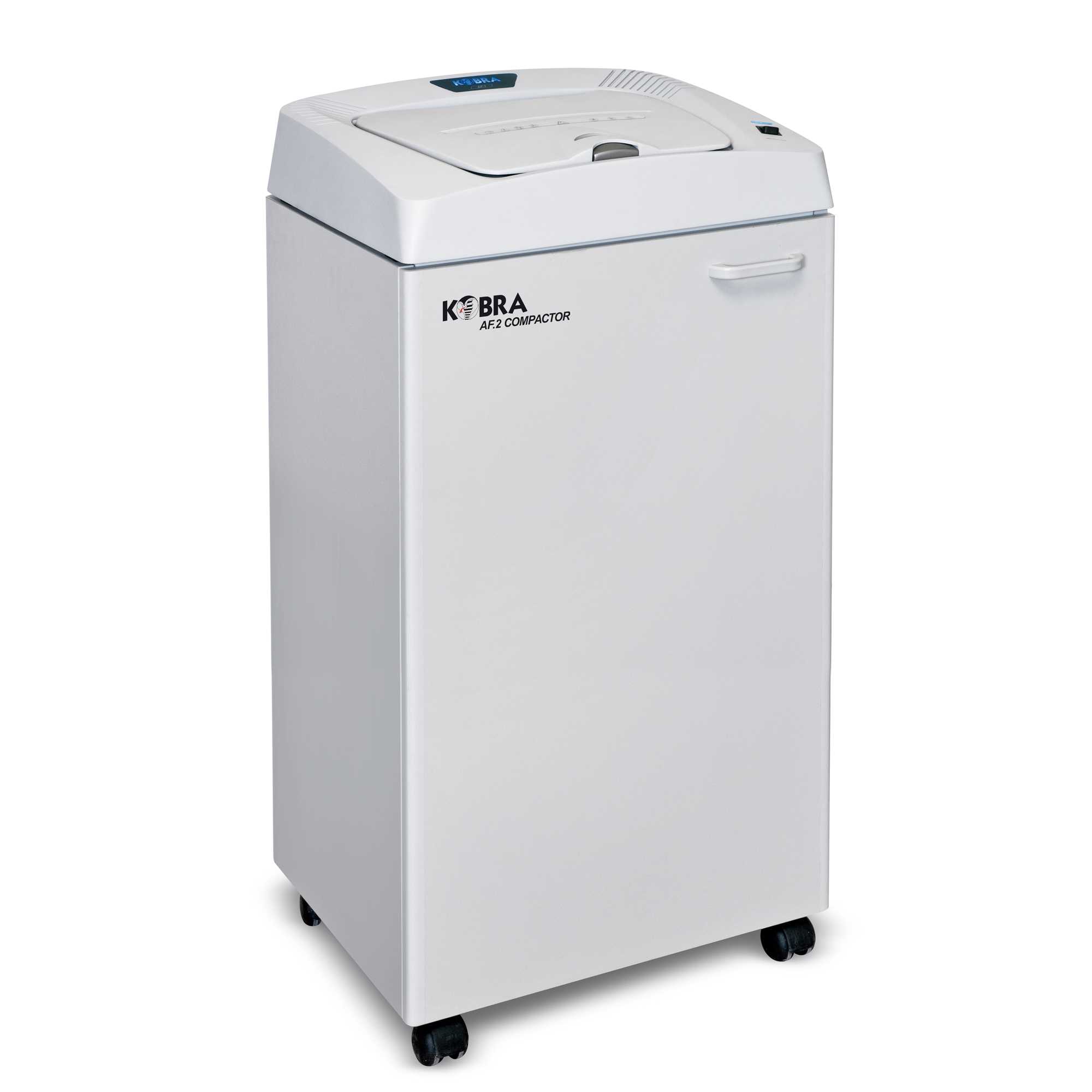 IL DISTRUTTORE AUTOMATICO KOBRA AF.2 COMPACTOR E' IL DISTRUGGIDOCUMENTI PIU' INNOVATIVO PRESENTE SUL MERCATO. LO SPECIALE COMPATTATORE AUTOMATICO INCREMENTA DI 4 VOLTE LA CAPACITA' DEL SACCO DA 150 LITRI PER EVITARE FREQUENTI SVUOTAMENTI. LA SUA INCREDIBILE VELOCITA' DISTRUTTIVA DI 37 FOGLI AL MINUTO PERMETTE UNA COMODA E VELOCE DISTRUZIONE DI GRANDI QUANTITA' DI FOGLI SINGOLI A4. OLTRE AL CAPACE ALIMENTATORE AUTOMATICO CHE ACCETTA FINO A 350 FOGLI, KOBRA AF.2 E' DOTATO DI UNA BOCCA D’ENTRATA SEPARATA PER L