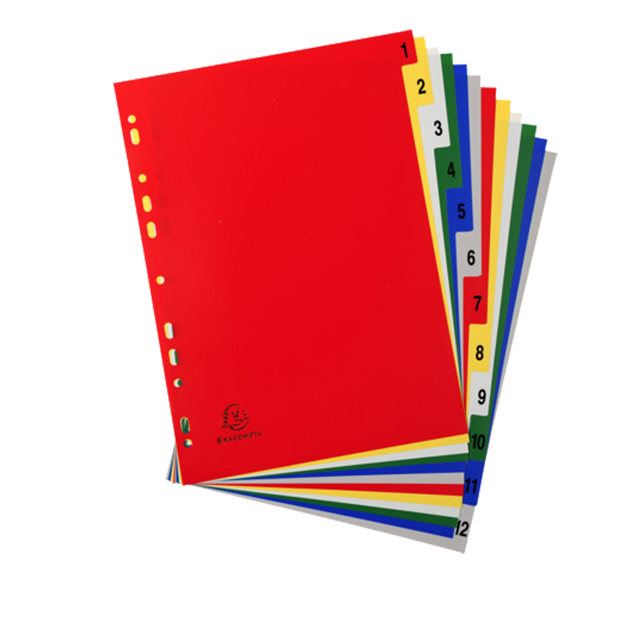 Divisori numerici 1-12 A4 - Ppl opaco Colori assortiti 46971E Exacompta