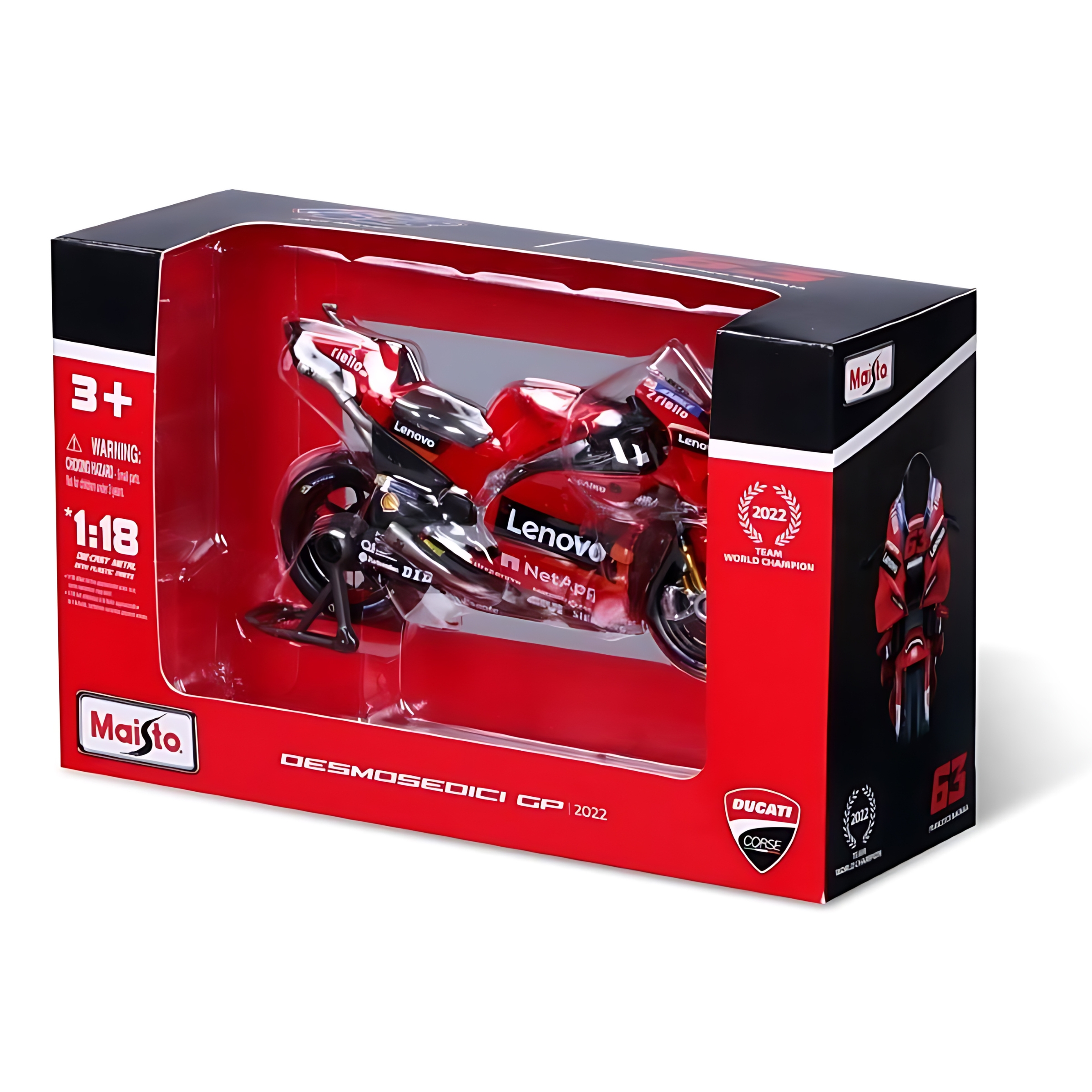 Questo modellino Die Cast rappresenta fedelmente la Ducati Desmosedici del Team Lenovo, pilotata dal campione del mondo 2022 Francesco Bagnaia. Perfetto per gli appassionati di motociclismo e collezionisti, il modellino in scala 1:18 è un pezzo imperdibile che cattura ogni dettaglio della moto da corsa.• Design Dettagliato: Realizzato con grande attenzione ai dettagli, questo modellino riproduce fedelmente la Ducati Desmosedici del Team Lenovo, dal numero 63 di Bagnaia alle grafiche degli sponsor.• Materiali di Alta Qualità: Costruito in metallo pressofuso (die cast) con parti in plastica, il modellino offre durabilità e un aspetto realistico, perfetto per l'esposizione.• Scala: La scala 1:18 rende questo modellino compatto ma ricco di dettagli, ideale per essere aggiunto a qualsiasi collezione di modellini di motociclette.• Ideale per Collezionisti: Questo modellino è un'ottima scelta per i collezionisti e gli appassionati di motociclismo, offrendo un pezzo commemorativo della vittoria di Bagnaia nel campionato mondiale 2022.• Confezione Originale: Il modellino è confezionato nella sua scatola originale, che lo protegge durante il trasporto e ne aumenta il valore collezionistico.Aggiungi alla tua collezione un pezzo di storia del motociclismo con il modellino Die Cast della Ducati Desmosedici Team Lenovo di Francesco Bagnaia, celebrando il trionfo del campione del mondo 2022.