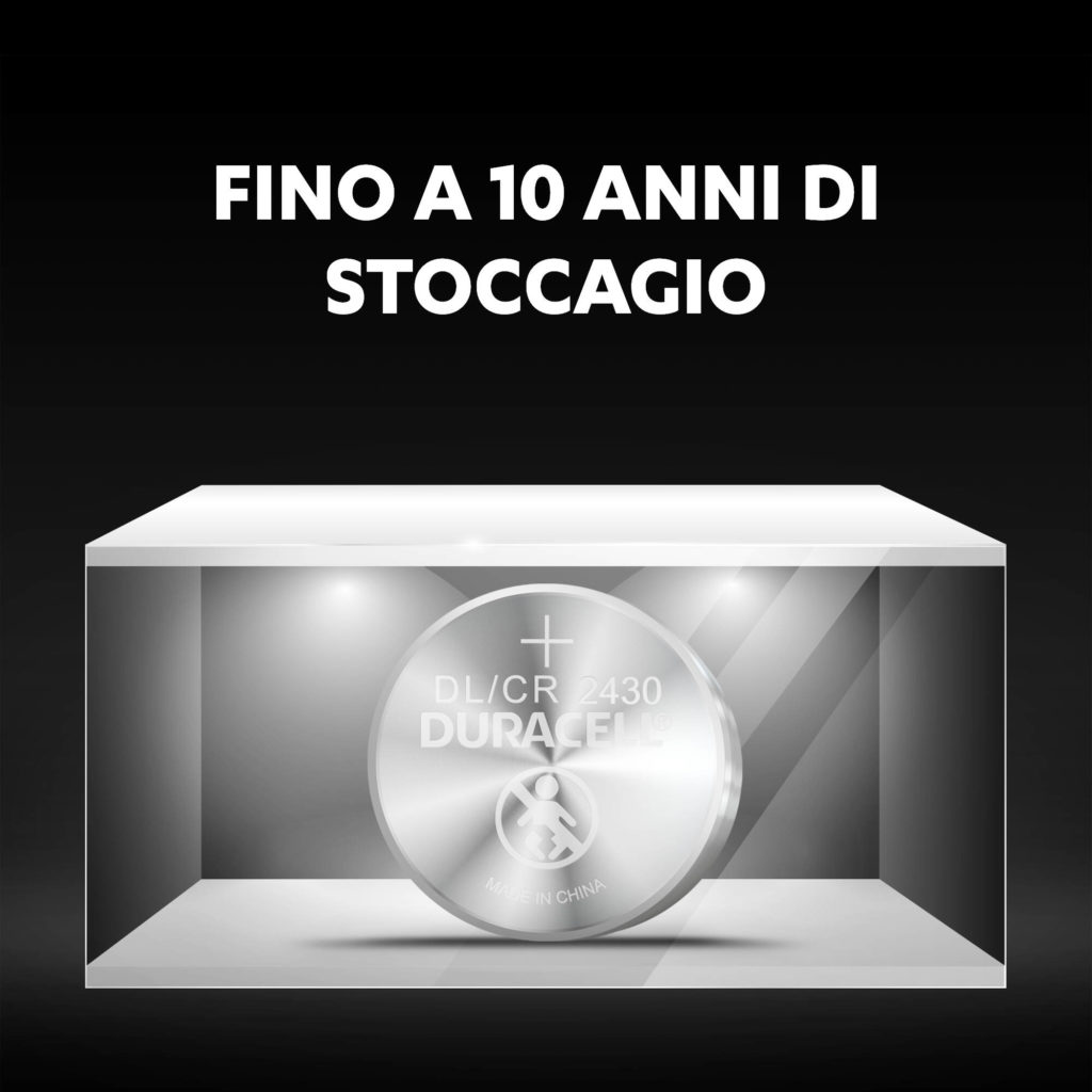 Le batterie Duracell Specialistiche a bottone al litio 2430 sono prodotte con litio ad alta purezza per fornire energia affidabile e duratura ai tuoi dispositivi specialistici. Garantiscono una durata fino a 10 anni se correttamente conservate nella confezione, così potrai essere sicuro di avere le tue batterie pronte all'uso quando ne avrai bisogno. Per aiutare ad assicurare la sicurezza dei tuoi bambini, sono state progettate in una confezione Baby Secure: doppio blister a prova di manomissione impossibile da aprire per mano di un bambino senza forbici. Sono adatte ad essere usate in chiavi telecomando, piccoli telecomandi, bilance, accessori da abbigliamento, sensori, dispositivi medici (glucometri, termometri digitali), dispositivi sportivi (monitor per frequenza cardiaca, accessori per biciclette).