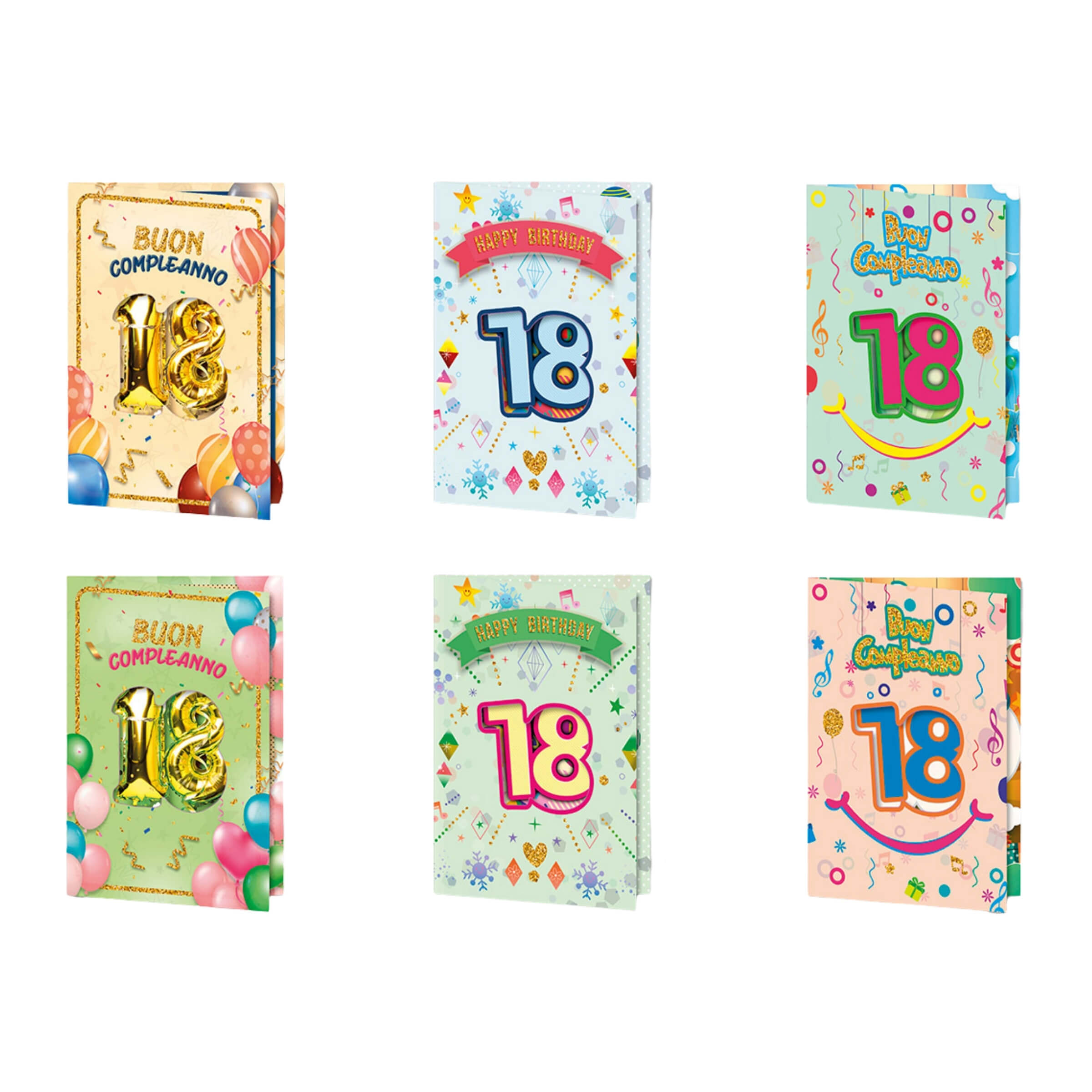 ED-078 BIGLIETTI AUGURI BUON COMPLEANNO 18 ANNI (12PZ)