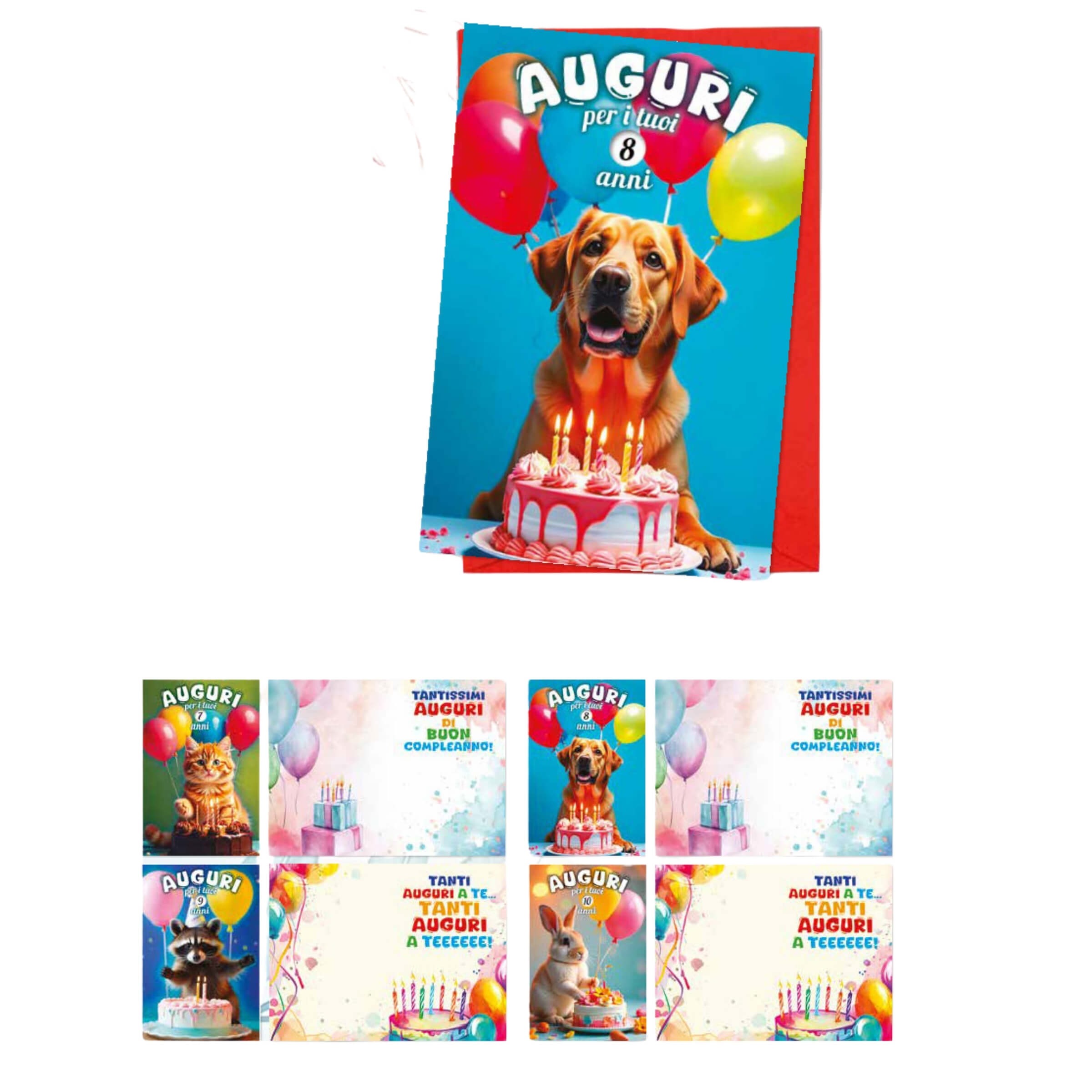 I biglietti augurali animali con ruota numeri da 2 a 10 anni sono un modo simpatico, divertente e originale per festeggiare in modo speciale il compleanno di ogni bambino. Ogni biglietto offre la possibilità di personalizzare facilmente l'età, creando così un'esperienza unica e coinvolgente che regalerà sorrisi e gioia in un giorno speciale.• Formato Ottimale: Le dimensioni di 11,5 x 17 cm da chiuso rendono i biglietti perfetti per contenere un messaggio speciale di auguri, ma abbastanza compatti da poter essere facilmente conservati come prezioso ricordo.• Ruota con Numeri da 2 a 10 Anni: L'innovativa ruota consente di scegliere rapidamente l’età giusta per ogni festeggiato. Questo elemento interattivo aggiunge un tocco di originalità, permettendo ai bambini di sentirsi protagonisti nel loro giorno speciale.• Design Simpatico con Animali: Ciascun biglietto presenta immagini adorabili e dettagliate di animali come cani, gatti, conigli e procioni accompagnati da palloncini e deliziose torte di compleanno, creando una cornice allegra e festosa perfetta per ogni festa.• Materiali Resistenti e Sicuri: Realizzati con cartoncino di alta qualità e rivestiti con cellophane antistatico, i biglietti garantiscono durata e protezione. Ogni biglietto è accompagnato da una busta colorata che dona eleganza e vivacità al tuo regalo.• Confezione Assortita da 12 Pezzi: Ogni scatola contiene 12 biglietti con 4 soggetti assortiti, ideali per chi ama avere sempre a disposizione una varietà di soluzioni per ogni compleanno. Perfetti per rivenditori o per chi desidera avere una scorta pratica e pronta all'uso.I biglietti augurali animali con ruota numeri da 2 a 10 anni sono la scelta ideale per regalare emozioni, allegria e un tocco personale e unico che renderà ogni compleanno indimenticabile. Adatti a tutte le età da 2 a 10 anni, offrono un modo divertente e creativo per esprimere affetto e festeggiare con stile.