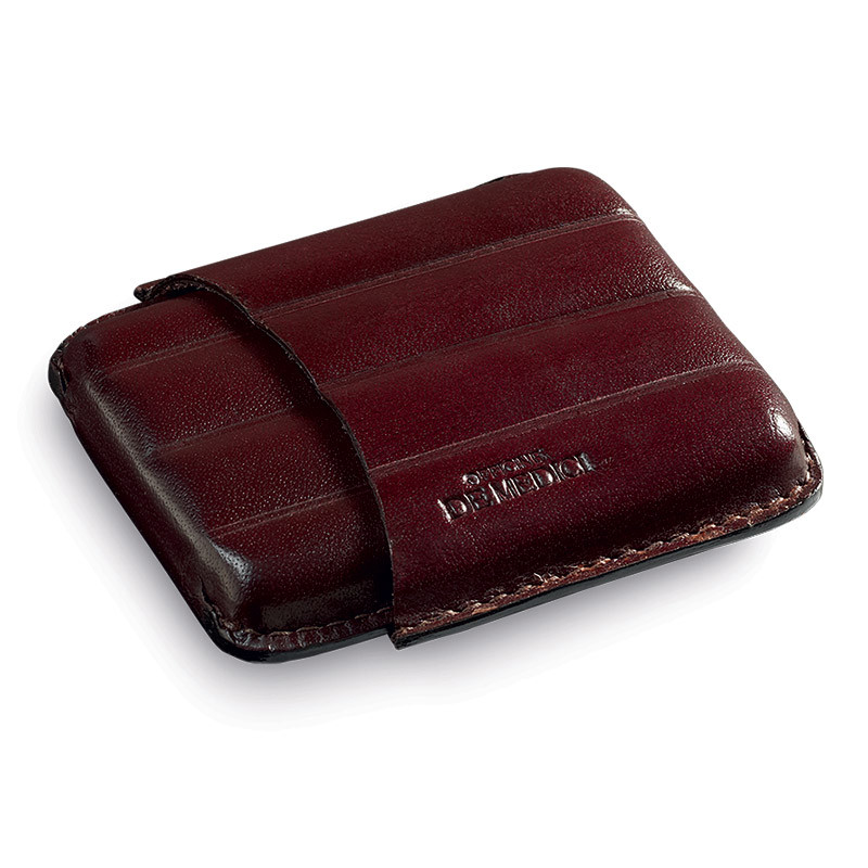 Portasigari sagomato in vera pelle per 4 sigari ammezzati. Colore marrone.Confezionato in scatola bottom down nera con logo Egoist.