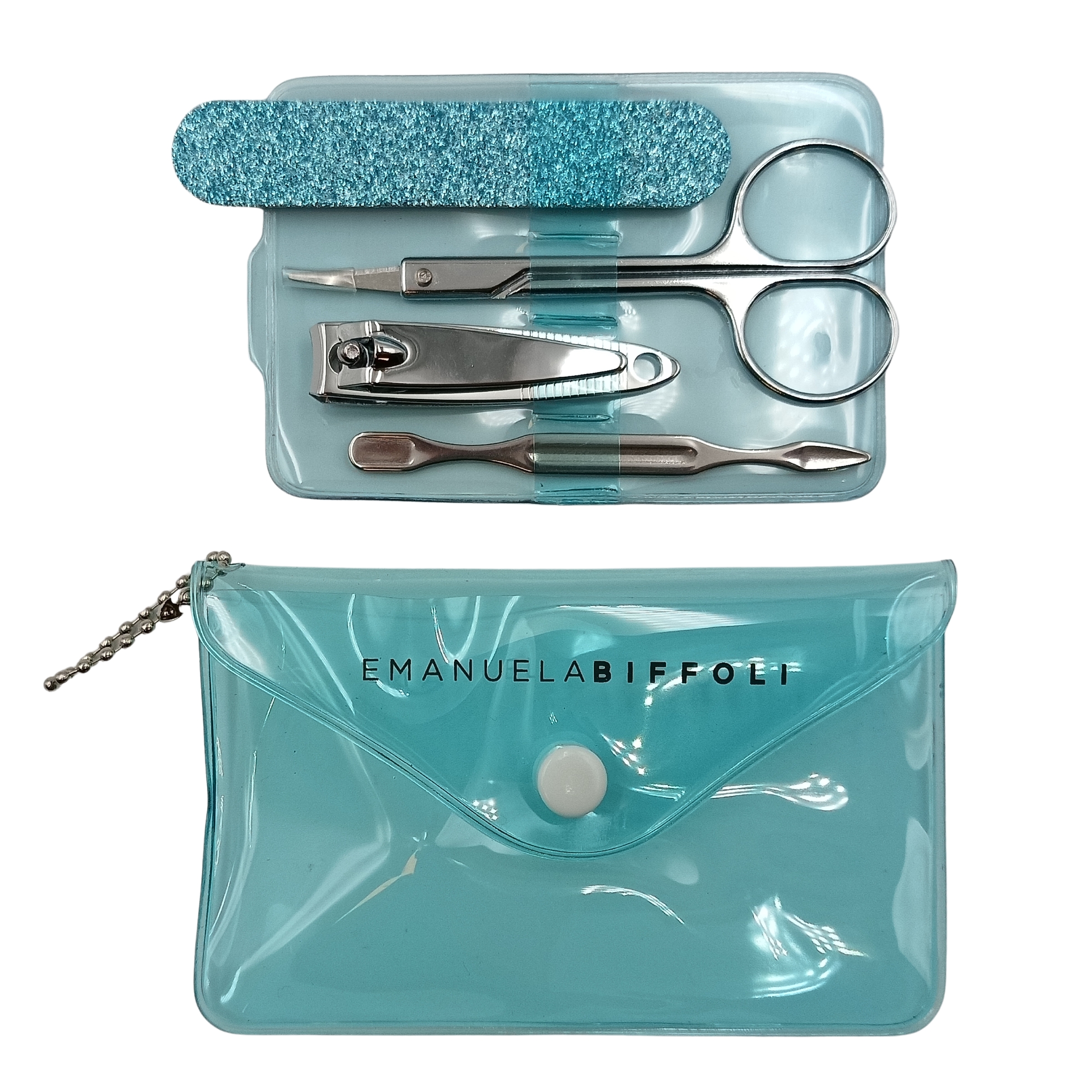 Il Set Manicure Emanuela Biffoli è un compagno di viaggio ideale per chi tiene alla cura delle proprie unghie anche fuori casa. Presentato in una pratica busta PVC, questo set è disponibile in quattro vivaci colori: Rosa, Arancione, Verde e Azzurro. Ogni set comprende quattro accessori essenziali per una manicure perfetta, garantendo praticità e qualità.• Tagliaunghie Mani da 5.5 cm: Preciso e robusto, questo strumento è ideale per un taglio netto e definito, essenziale per mantenere le unghie delle mani in perfetto ordine ovunque tu sia.• Lima in Cartone Doppia Grana da 8 cm: Con un lato fine e un lato grosso, questa lima permette di modellare le unghie con precisione, adattandosi a ogni necessità di forma e finitura.• Forbice per Pelli da 9 cm: Progettata per rimuovere con cura e precisione le cuticole e le pelli in eccesso, questa forbice è un must-have per mantenere un aspetto curato delle unghie.• Spingipelle con 2 Punte da 7.5 cm: Lo strumento perfetto per trattare le cuticole, consentendo di spingerle indietro delicatamente e di pulire l'area dell'unghia per una manicure professionale.Il Set Manicure Emanuela Biffoli è la soluzione ideale per chi desidera avere sempre a portata di mano tutto il necessario per una manicure d'emergenza o per un ritocco veloce, senza rinunciare alla qualità degli strumenti. Che tu sia in viaggio, al lavoro, o semplicemente fuori per una serata, questo set ti permette di prenderti cura delle tue unghie con stile e efficienza.Confezionato in una busta PVC trasparente, è facile da trasportare e da conservare, rendendolo un accessorio pratico e igienico, perfetto per essere inserito in borsa, in valigia o tenuto nel cassetto dell'ufficio. Scegli il tuo colore preferito e rendi la cura delle unghie un momento di puro piacere, anche quando sei lontano da casa.