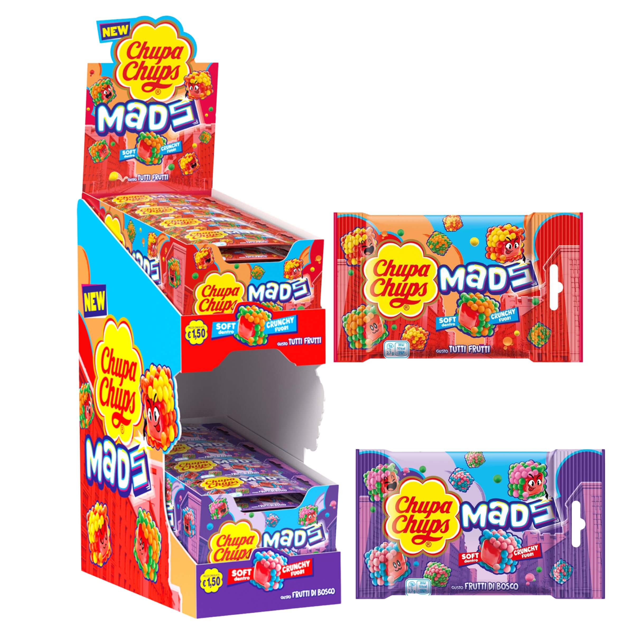 Espositore Buste Chupa Chups Mads Soft Crunchy Tutti Frutti e Frutti di Bosco (3