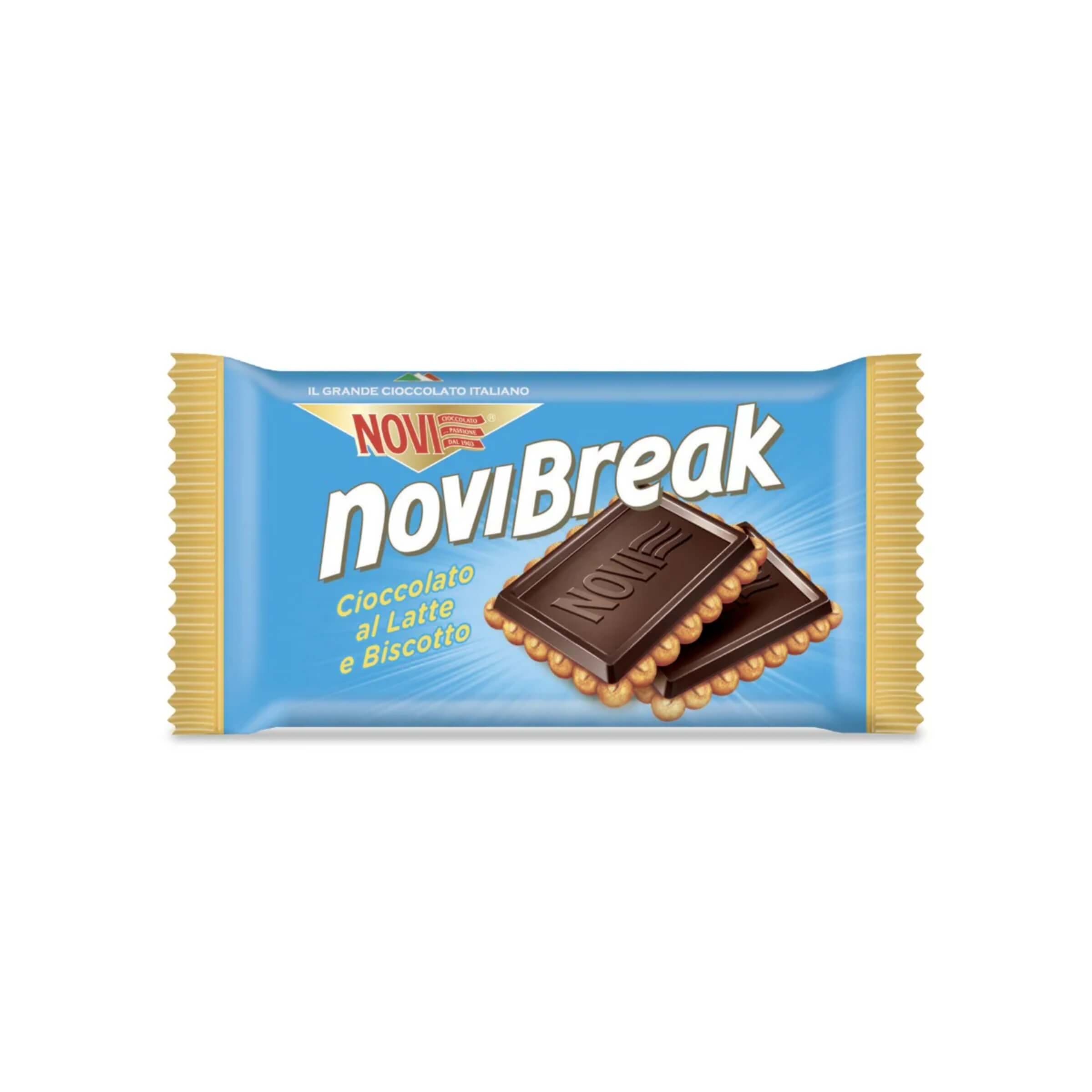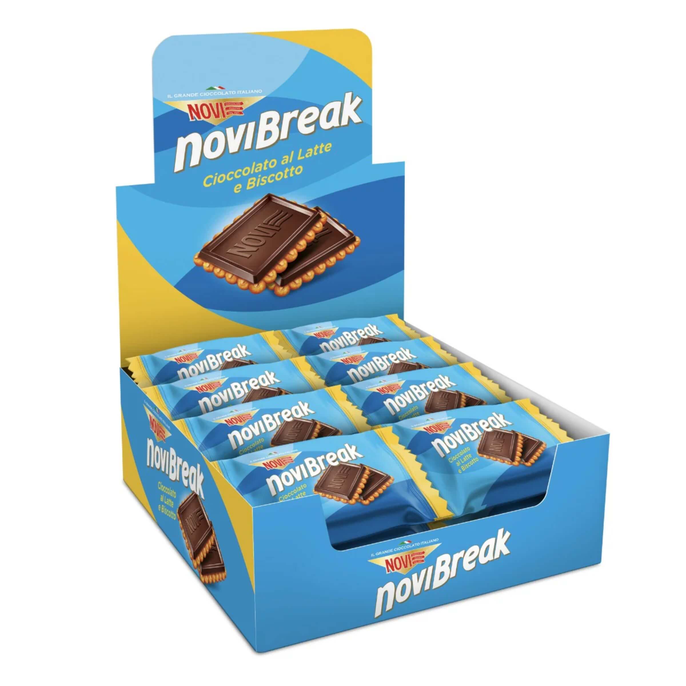 Quando la voglia di qualcosa di buono si fa sentire, ma il tempo è poco, la risposta è semplice e golosa: NoviBreak. Pensato per accompagnare i momenti di pausa con un equilibrio perfetto tra croccantezza e cremosità, questo snack unisce la semplicità di un biscotto di frolla alla qualità del cioccolato al latte finissimo di Novi. Perfetto per la colazione, la merenda o uno spuntino veloce, NoviBreak si presenta in una pratica confezione monoporzione, ideale per la vendita al dettaglio e il consumo fuori casa.• Formato pratico: Ogni confezione contiene due biscotti uniti da uno strato generoso di cioccolato al latte, per un totale di 45 grammi a porzione. L’espositore ne include 24 monoporzioni, per un totale di 48 biscotti.• Doppia consistenza: Il contrasto tra la base friabile del biscotto e la superficie morbida del cioccolato al latte rende ogni morso equilibrato, appagante e mai stucchevole.• Materie prime selezionate: Realizzato con cioccolato Novi al latte di alta qualità, ottenuto da una miscela di cacao finemente lavorato, abbinato a un biscotto delicato e fragrante.• Espositore compatto: Il formato da banco è studiato per l’esposizione diretta in tabaccherie, bar, aree colazione o snack corner, con packaging accattivante e chiara visibilità del prodotto.• Ideale per la pausa: Grazie alla monoporzione, ogni NoviBreak è facile da trasportare e perfetto per accompagnare un caffè, uno spuntino al lavoro o una merenda veloce a scuola.NoviBreak trasforma una semplice pausa in un momento gustoso e appagante, grazie all’unione di tradizione dolciaria e qualità cioccolatiera. Un prodotto pratico, curato nei dettagli e pensato per chi non vuole rinunciare al piacere autentico del cioccolato, nemmeno nei ritmi frenetici della giornata.