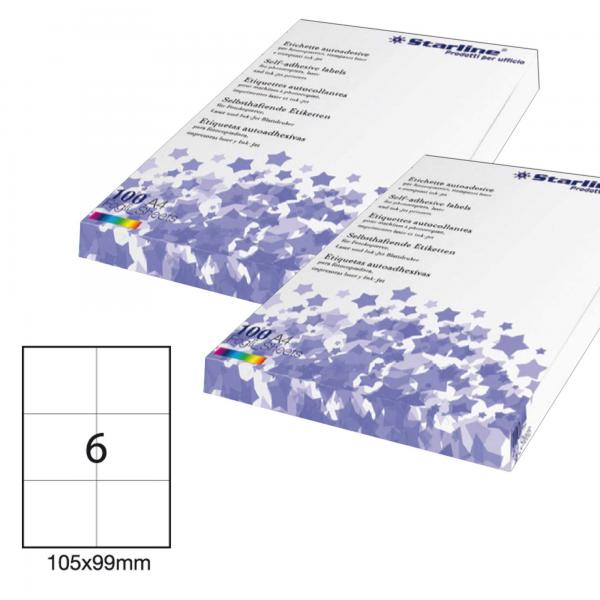 Etichetta adesiva bianca 100fg A4 105x99mm (6et/fg) STARLINE