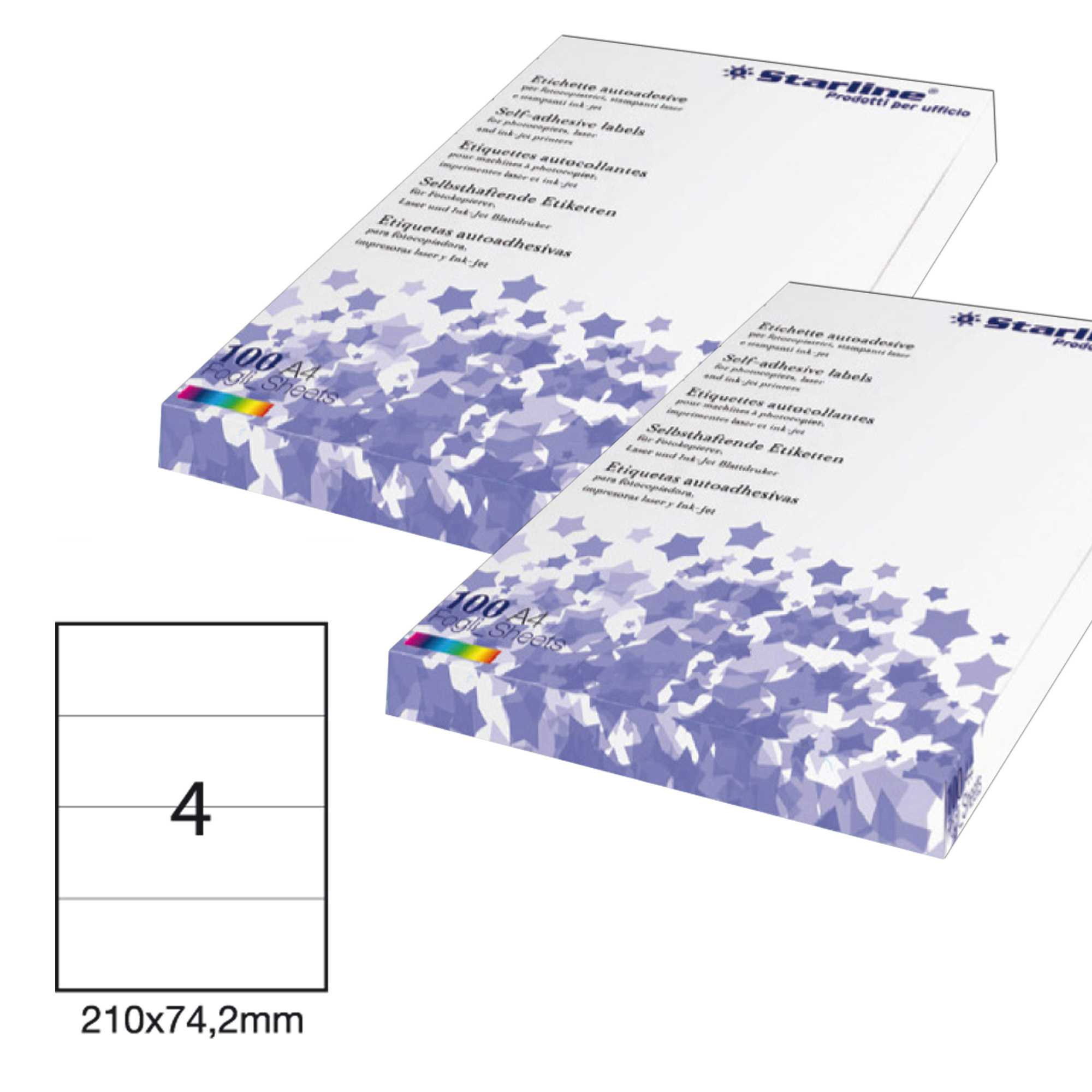 Etichetta adesiva bianca 100fg A4 210x74,2mm (4et/fg) STARLINE
