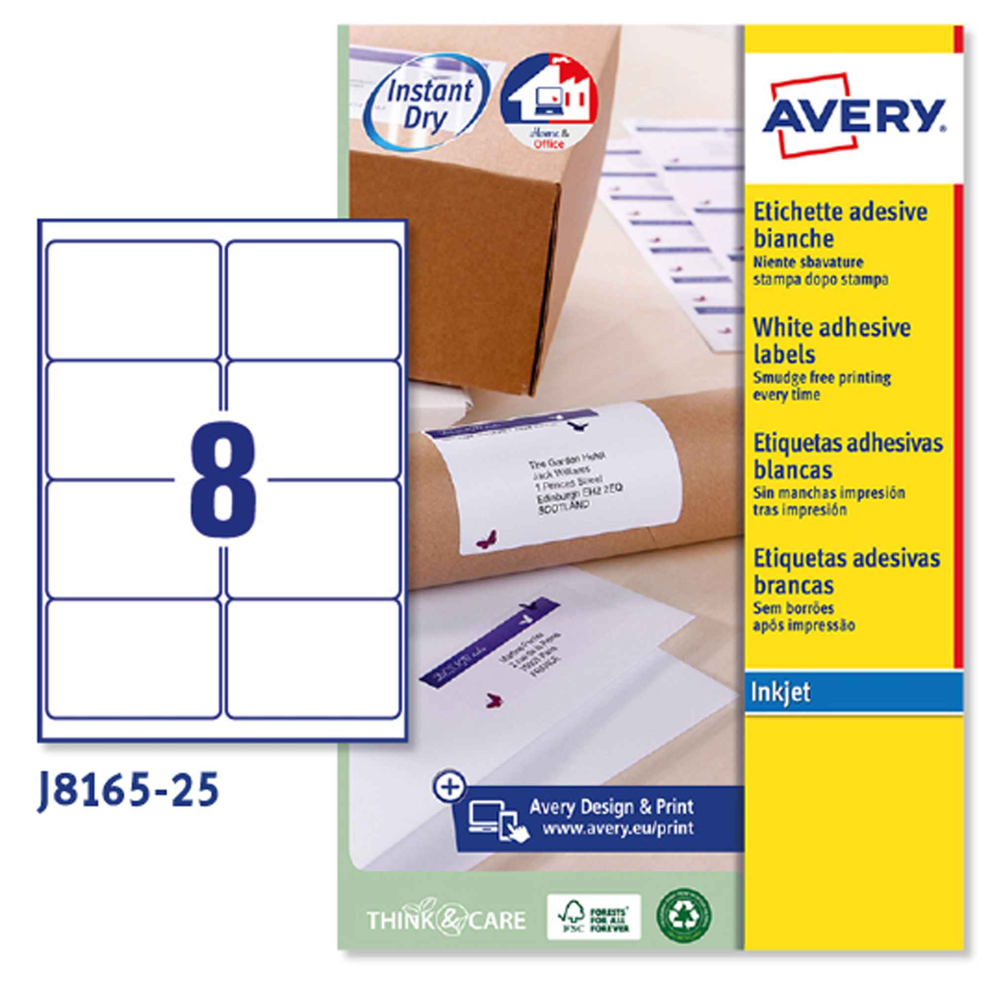Etichetta adesiva J8165 bianca 25fg A4 99,1x67,7mm (8et/fg) inkjet Avery