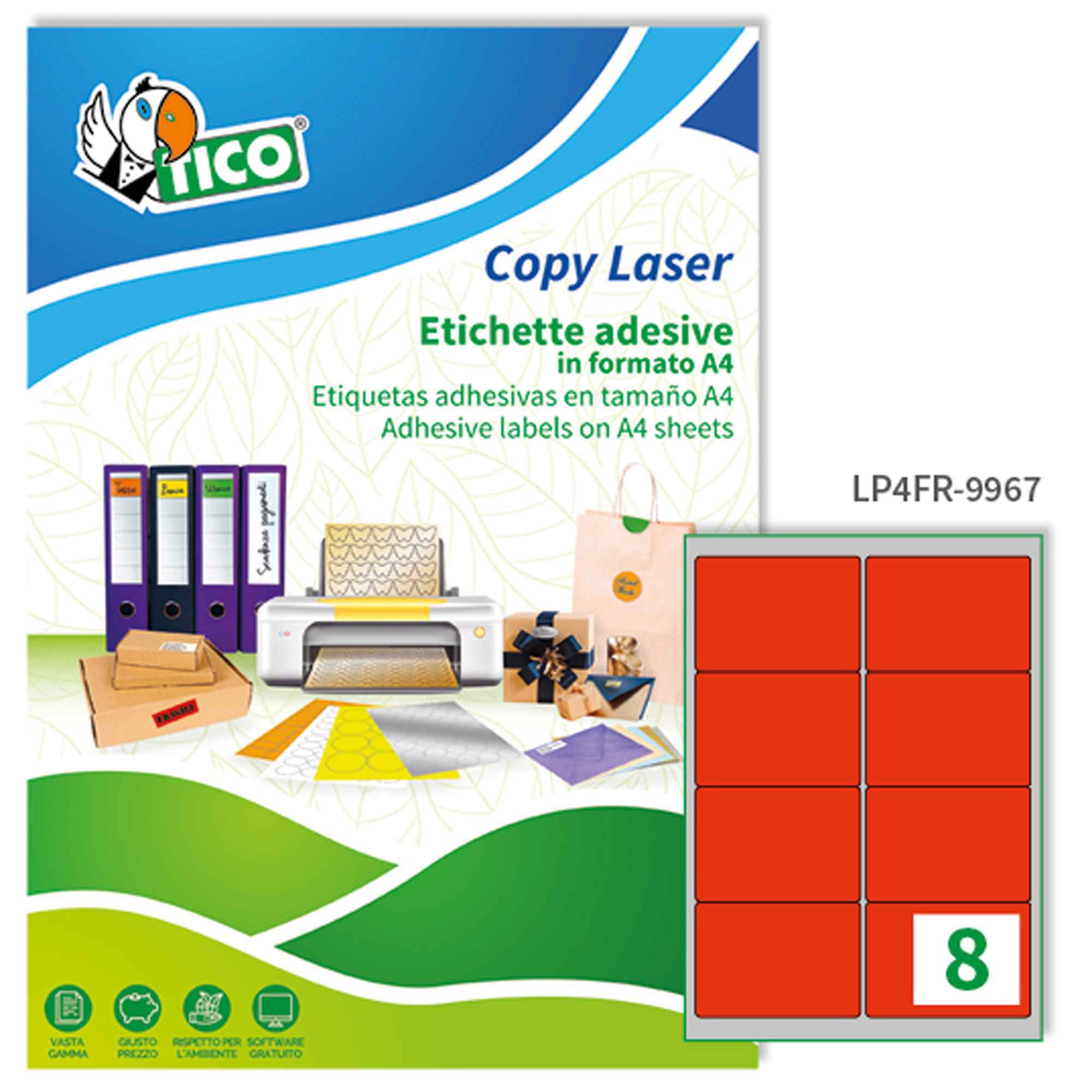 Etichetta adesiva LP4F rosso fluo 70fg A4 99,1x67,7mm (8et/fg) Tico