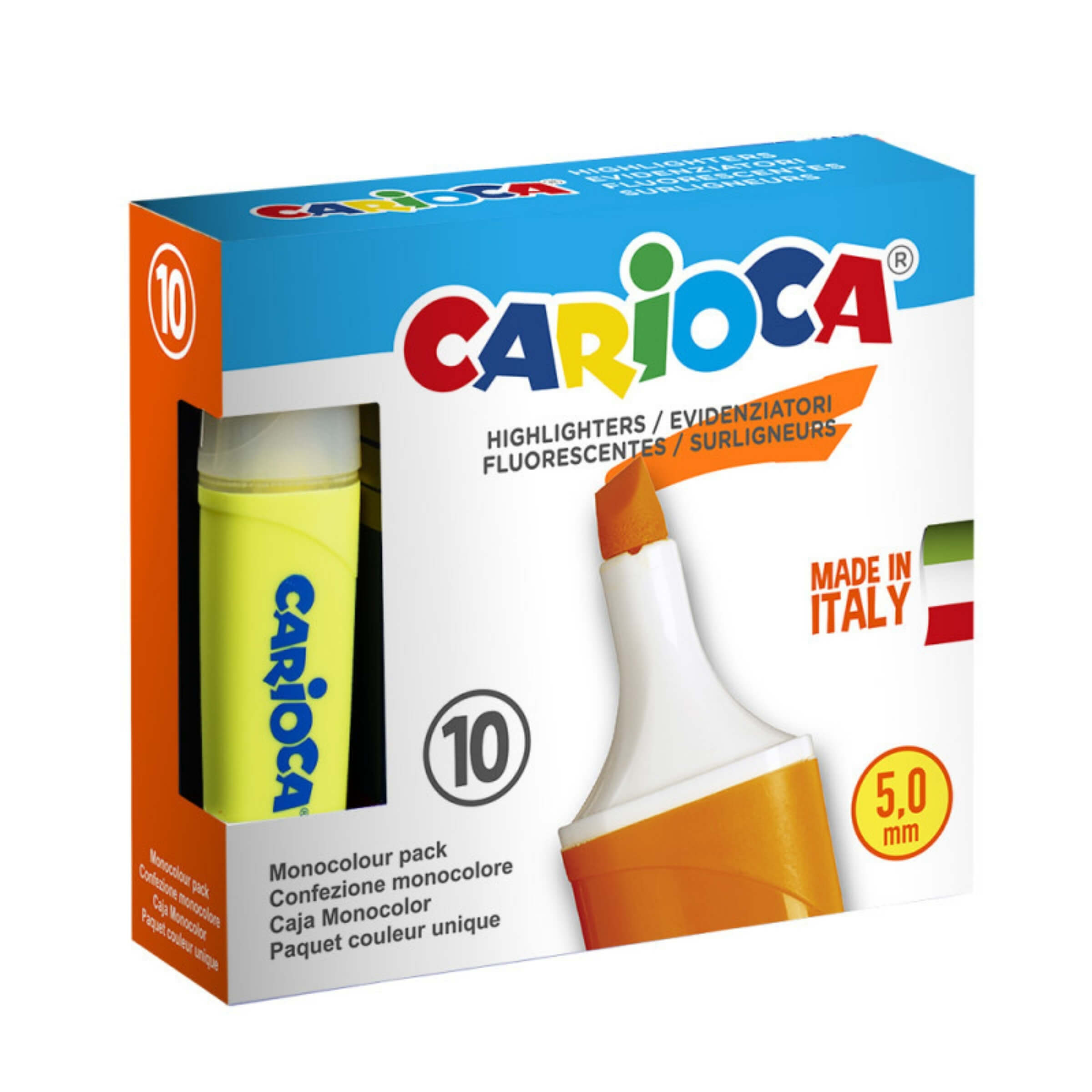 L’evidenziatore Carioca Memolight Giallo è uno strumento indispensabile per studenti, professionisti e chiunque desideri mettere in risalto testi e appunti in modo chiaro e duraturo. Realizzato con inchiostro a base d’acqua e un design ergonomico, unisce comfort, precisione e vivacità del colore in un unico prodotto. La sua punta a scalpello consente di scegliere tra tratti sottili o marcati, adattandosi perfettamente a ogni tipo di scrittura e superficie. Pensato per un uso quotidiano, è ideale per libri, quaderni, documenti e materiali di lavoro, garantendo sempre un risultato pulito e omogeneo.• Colore brillante: La tonalità gialla ad alta fluorescenza assicura una visibilità eccellente, evidenziando parole e frasi con un effetto luminoso e uniforme che facilita la lettura e la memorizzazione.• Punta a scalpello da 5 mm: La punta ampia e resistente permette di creare linee di diverso spessore, da 1 a 5 mm, rendendo questo evidenziatore perfetto sia per sottolineare testi sottili che per marcare titoli e parole chiave in modo deciso.• Inchiostro a base d’acqua: L’inchiostro, formulato per essere lavabile e sicuro, è adatto a tutti i tipi di carta e non trapassa i fogli. Garantisce un’asciugatura rapida e una lunga durata anche dopo l’apertura del cappuccio.• Sicurezza e comfort: Il cappuccio ventilato evita il rischio di soffocamento e la punta bloccata impedisce la deformazione anche sotto pressione. Il prodotto è dermatologicamente testato, garantendo un uso sicuro anche per i più piccoli.• Confezione pratica: La scatola monocolore contiene 10 evidenziatori gialli, ideale per scuole, uffici e uso professionale, assicurando sempre una scorta pronta per ogni esigenza.L’evidenziatore Carioca Memolight Giallo rappresenta un equilibrio perfetto tra funzionalità, qualità e sostenibilità. Ogni dettaglio è studiato per offrire un’esperienza d’uso confortevole e affidabile, con colori brillanti che valorizzano ogni pagina. La produzione Made in Italy e l’impegno per materiali riciclabili confermano la qualità e l’attenzione ambientale del marchio Carioca, simbolo di creatività e affidabilità.