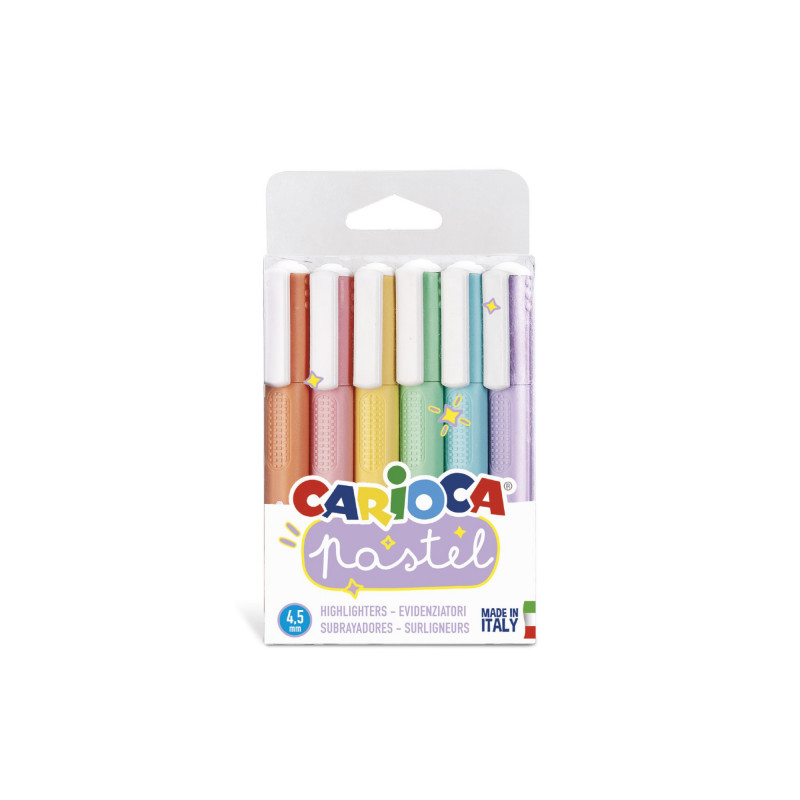 • Scatola d'evidenziatori dai colori pastello• 6 colori diversi• Inchiostro lavabile a base acqua• Punta a scalpello di 5 mm• Made in Italy