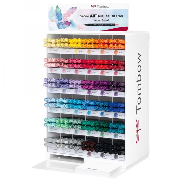 MARKER DUAL BRUSH TOMBOW. DUE PUNTE IN FIBRA: SOTTILE PER TRACCIARE LINEE PRECISE, PENNELLO PER COLORARE AMPI SPAZI. INCHIOSTRO A BASE D'ACQUA, ATOSSICO, INODORE, ACID FREE. I COLORI NON SBAVANO, POSSONO ESSERE MISCELATI E ACQUARELLATI TRA DI LORO PER CREARNE DI NUOVI. ESPOSITORE DA BANCO CON 36 COLORI ASSORTITI PER UN TOTALE DI 216 PENNARELLI.