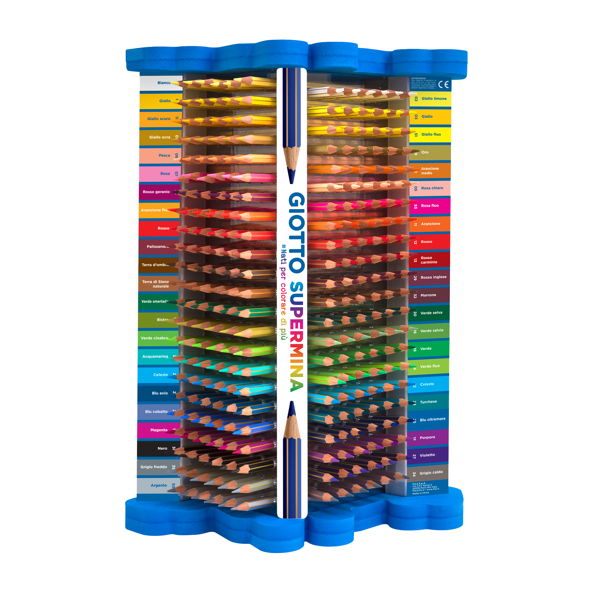 ESPOSITORE DA BANCO CON 558 MATITE SUPERMINA IN 42 COLORI ASSORTITI.