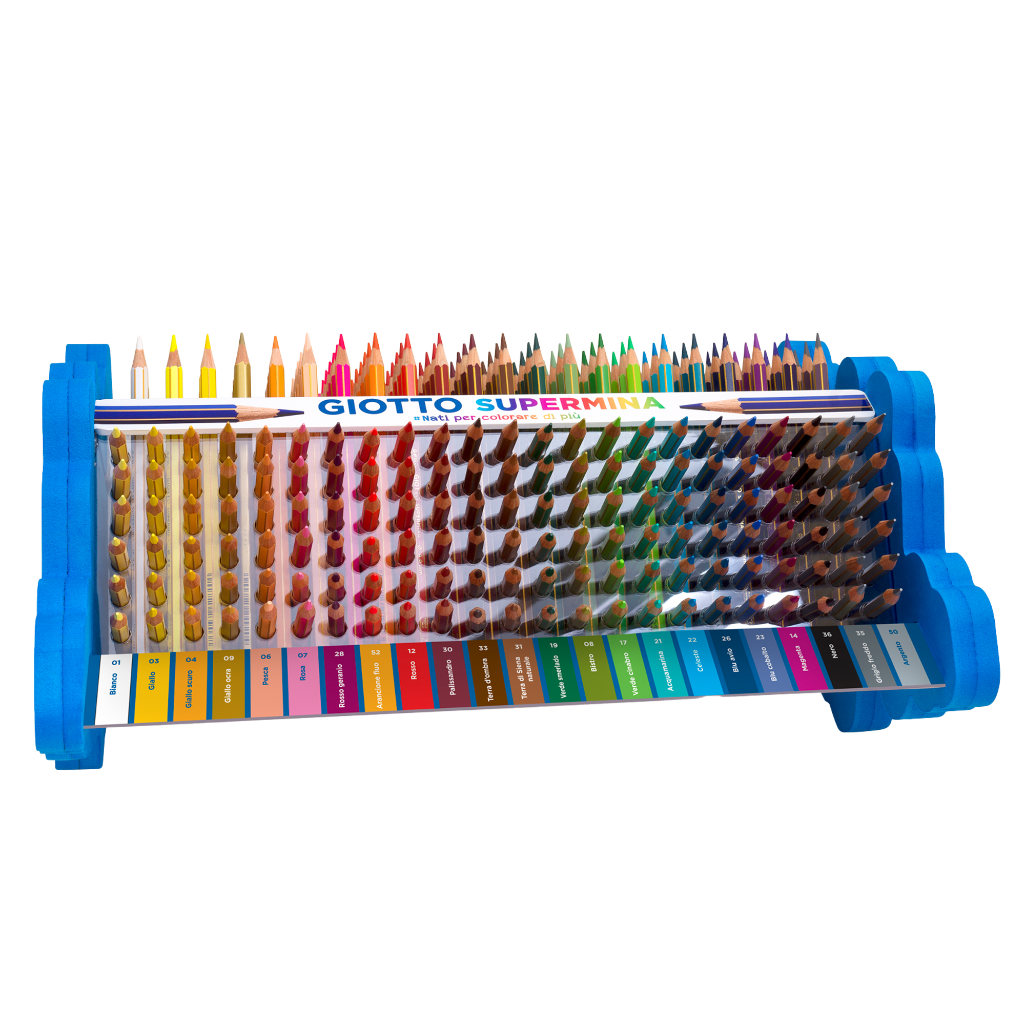 ESPOSITORE DA BANCO CON 558 MATITE SUPERMINA IN 42 COLORI ASSORTITI.