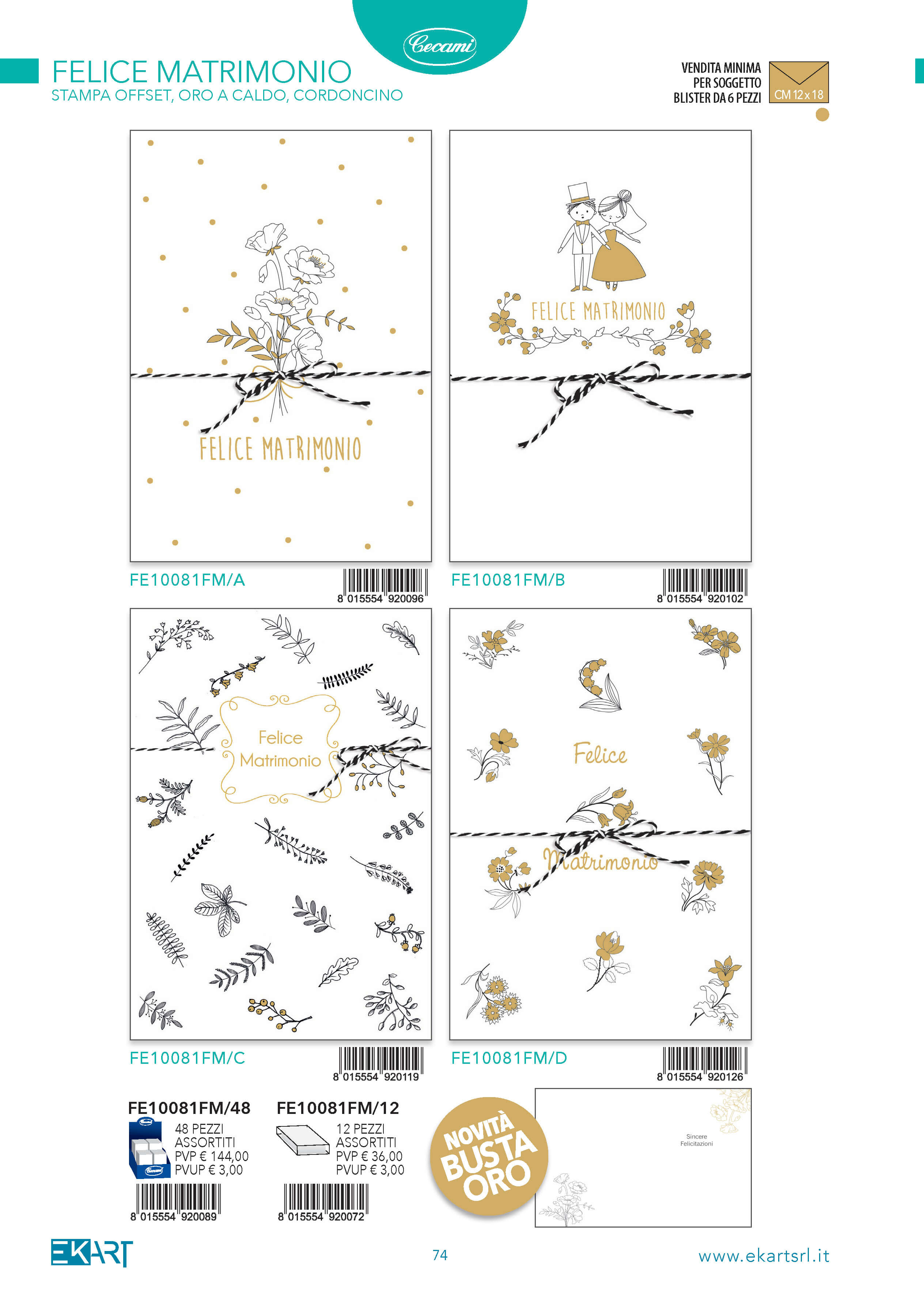 FE10081FM - FELICE MATRIMONIO CON CORDONCINO BUSTA ORO (12PZ)