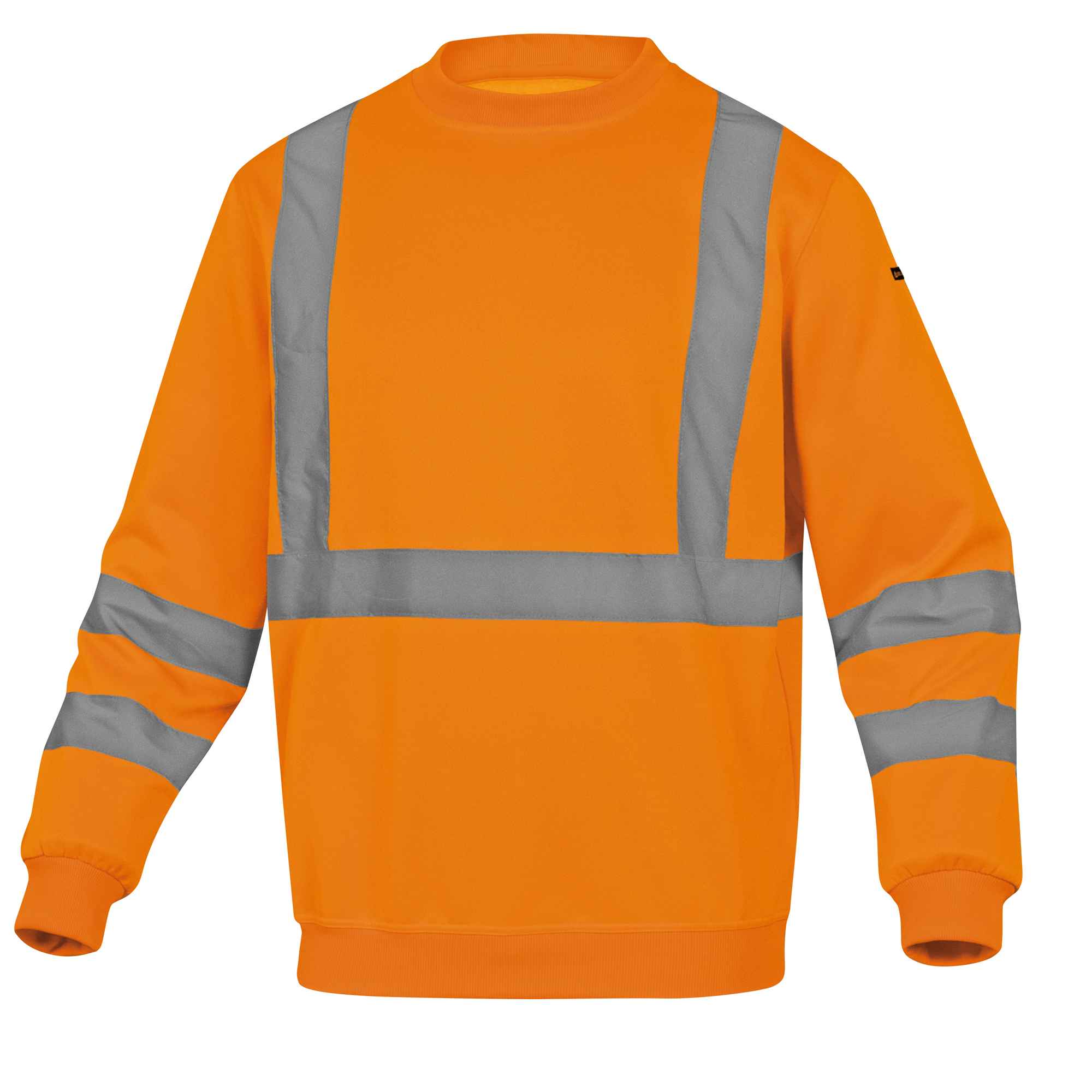 FELPA SPORTIVA CON POLSINI E PARTE BASSA DELLA FELPA CON BORDO A COSTE. BANDE A BRETELLA COLORE ARGENTO. COLORE ARANCIO FLUO. CATEGORIA DPI: 2. CERTIFICAZIONE CE. CONFORMITA' ALLE NORME EN ISO 13688:2013 E EN ISO 20471:2013 /A1:2016.