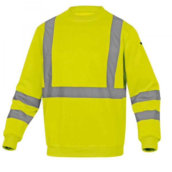 FELPA SPORTIVA CON POLSINI E PARTE BASSA DELLA FELPA CON BORDO A COSTE. BANDE A BRETELLA COLORE ARGENTO. COLORE GIALLO FLUO. CATEGORIA DPI: 2. CERTIFICAZIONE CE. CONFORMITA' ALLE NORME EN ISO 13688:2013 E EN ISO 20471:2013 /A1:2016.