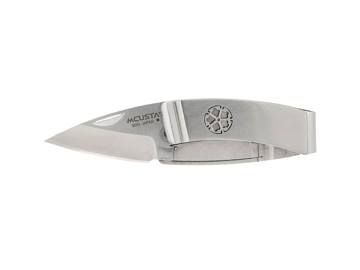 La serie di Kamon presenta coltelli con un esclusivo blocco lama scheletrato ed un robusto fermasoldi integrato. È offerto in più versioni, ciascuna con uno stemma di famiglia tradizionale giapponese (Kamon) tagliato al laser. Questo coltello misura 2,9 pollici di lunghezza da chiuso e presenta una lama AUS-8 con manico in acciaio inossidabile. Un coltello tascabile fermasoldi elegante e unico con design Kikyo integrato nella clip.