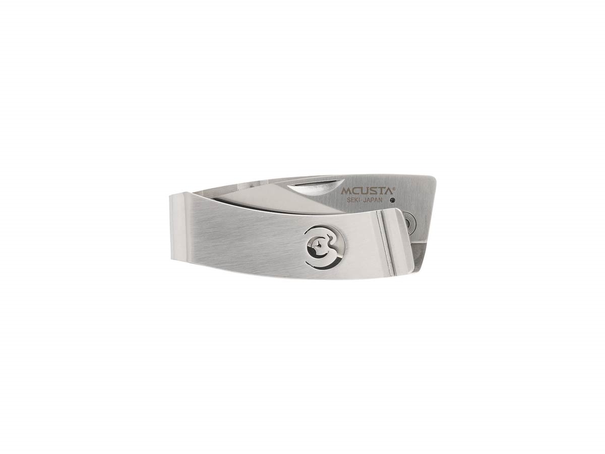 La serie di Kamon presenta coltelli con un esclusivo blocco lama scheletrato ed un robusto fermasoldi integrato. È offerto in più versioni, ciascuna con uno stemma di famiglia tradizionale giapponese (Kamon) tagliato al laser. Questo coltello misura 2,9 pollici di lunghezza da chiuso e presenta una lama AUS-8 con manico in acciaio inossidabile. Un coltello tascabile fermasoldi elegante e unico con design Tsuru integrato nella clip.