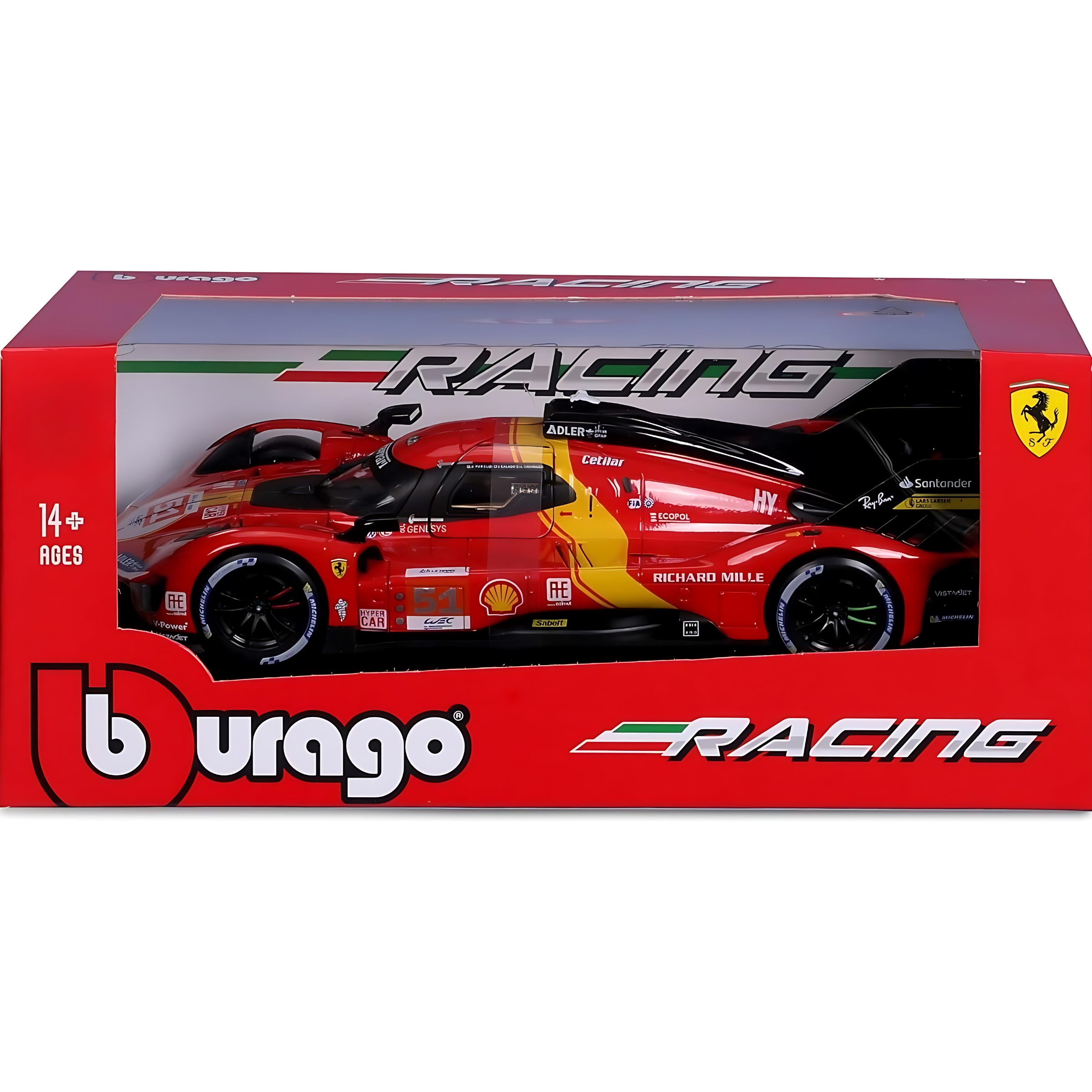 Il modellino auto Die Cast Bburago Ferrari 499P LMH - 2023 24H Le Mans Champion in scala 1:43 è una riproduzione dettagliata della leggendaria vettura che ha conquistato il titolo a Le Mans. Ideale per collezionisti e appassionati di automobilismo, questo modellino offre un'esperienza visiva eccezionale e una qualità costruttiva senza compromessi.• Riproduzione Dettagliata: Questo modellino cattura ogni dettaglio della Ferrari 499P LMH, dai loghi degli sponsor alle livree ufficiali. Ogni elemento, dal muso al retrotreno, è realizzato con precisione, offrendo un prodotto autentico e fedele all'originale.• Materiale Die Cast di Alta Qualità: Realizzato in materiale Die Cast resistente, questo modellino garantisce durabilità e robustezza nel tempo. La struttura solida e ben definita lo rende perfetto per l'esposizione in collezioni private o su scrivanie.• Scala 1:43: La scala 1:43 permette di apprezzare ogni minimo dettaglio della Ferrari 499P LMH in una dimensione compatta e pratica. Questa scala è ideale per collezioni che richiedono spazio limitato senza sacrificare la qualità della riproduzione.• Design Aerodinamico: Il design aerodinamico della Ferrari 499P LMH è fedelmente riprodotto, catturando l'essenza e la potenza della vettura originale. Le linee eleganti e le colorazioni vivaci rendono questo modellino un pezzo imperdibile per ogni appassionato di auto da corsa.• Ideale per Collezionisti: Questo modellino è un'aggiunta eccellente per qualsiasi collezione di auto in scala. La sua accuratezza nei dettagli e la qualità dei materiali lo rendono un oggetto da collezione prezioso e ricercato.Il modellino auto Die Cast Bburago Ferrari 499P LMH - 2023 24H Le Mans Champion in scala 1:43 è un omaggio alla grande tradizione delle corse Ferrari, combinando estetica e qualità in un unico prodotto. Perfetto per chi desidera portare a casa un pezzo della storia delle corse automobilistiche.