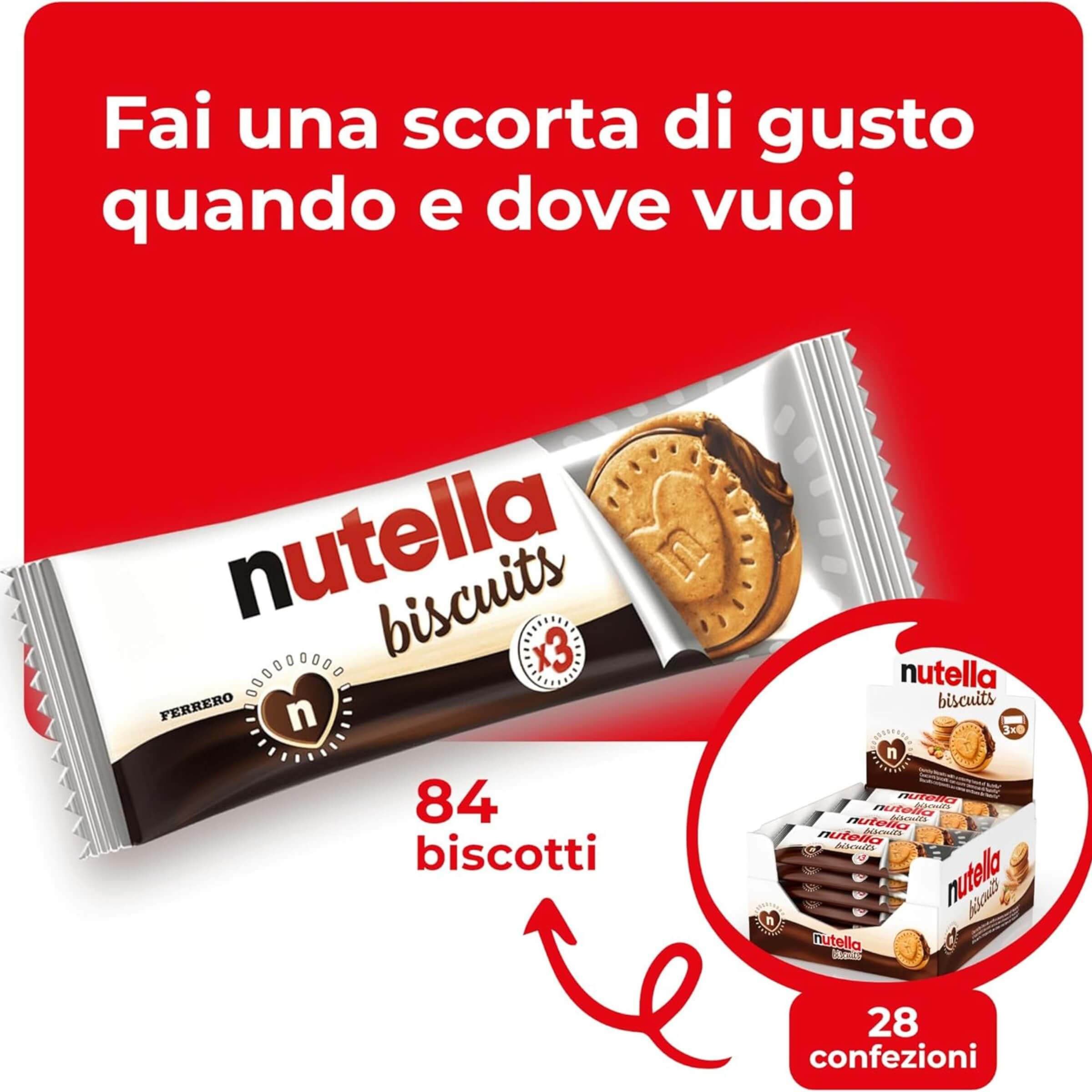 Nutella Biscuits è pensato per chi ama le cose semplici fatte bene, con ingredienti selezionati e un cuore che conquista al primo morso. Uno snack che richiama la tradizione ma con tutta la praticità di un formato moderno, pronto a regalare un piccolo momento di gioia e condivisione in ogni occasione.