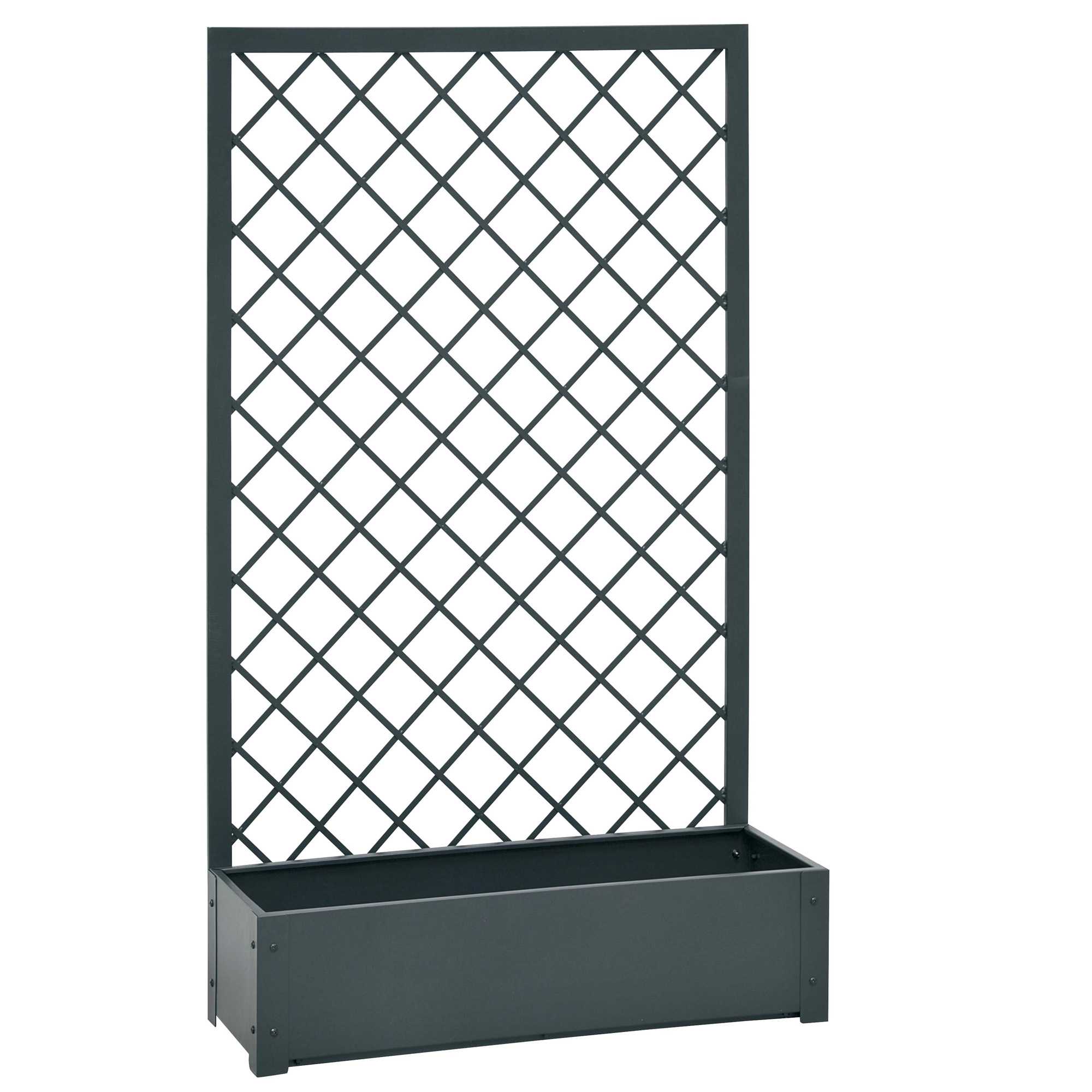 FIORIERA IN METALLO CON TRALICCIO - CREATA PER DARE PRESTIGIO A SUGGESTIVI ANGOLI IN GIARDINO O DOVE NECESSITA UNA DIVISORIA ROBUSTA COME CREARE DEHORS IN PUBBLICI ESERCIZI (BAR, RISTORANTI, AGRITURISMI) ECC. DI COLORE ANTRACITE VERNICIATE A POLVERI EPOSSIDICHE. DIMENSIONI TOTALI: L90 X P32 X H150CM - PESO 11,6KG. DIMENSIONI INTERNE DELLA FIORIERA: L86 X P26 X H 27CM. CONSEGNATO SMONTATO IN UN UNICO COLLO.
