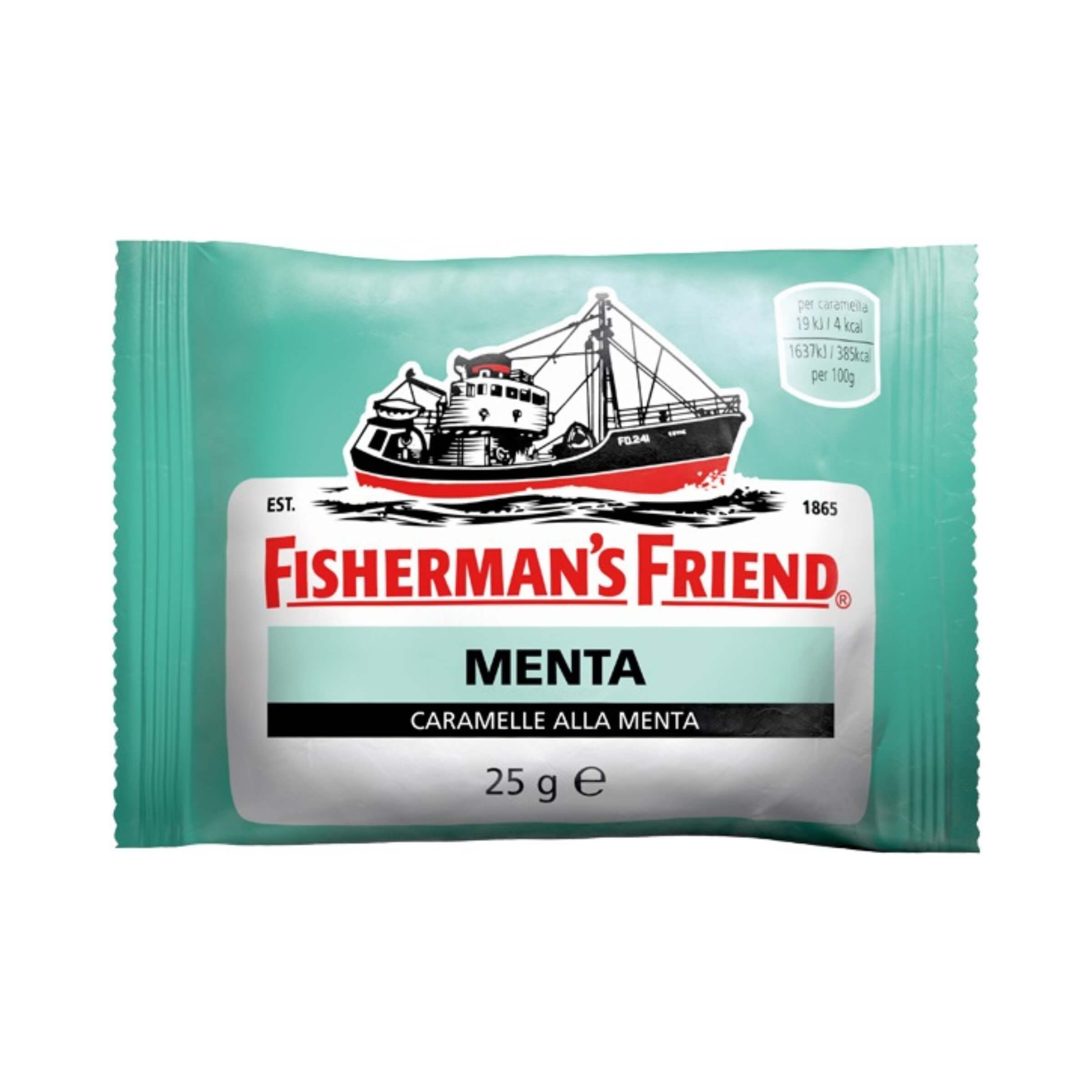 Autentico. Senza compromessi. Fisherman’s Friend alla Menta nella versione con zucchero è uno dei gusti storici: nel tempo non è mai cambiato, sia nell’aroma, sia nella freschezza, è sempre stato così come lo conosciamo oggi, unico per tutti questi anni.Informazioni Nutrizionali per 100g:• Energia: 1641 kJ / 386 kcal• Grassi: < 0,5 g (di cui saturi < 0,5 g)• Carboidrati: 96 g (di cui zuccheri 89 g, di cui polialcoli < 0,5 g)• Proteine: < 0,5 g• Sale: 0,02 gApporto Energetico per Singola Caramella:• Energia: 19 kJ / 4 kcal (approssimativamente 1,15 g per caramella)Caratteristiche Principali:• Con Zucchero: Questa versione contiene zucchero, offrendo un gusto classico e originale.• Vegano: Adatta per chi segue una dieta vegana.• Senza Glutine: Ideale per chi è intollerante al glutine.Le caramelle Fisherman’s Friend Verde Menta Forte sono perfette per chi cerca un sapore autentico e senza compromessi. La confezione da 24 pezzi da 25g ciascuno è ideale per avere sempre a portata di mano questa caramella storica e inimitabile.