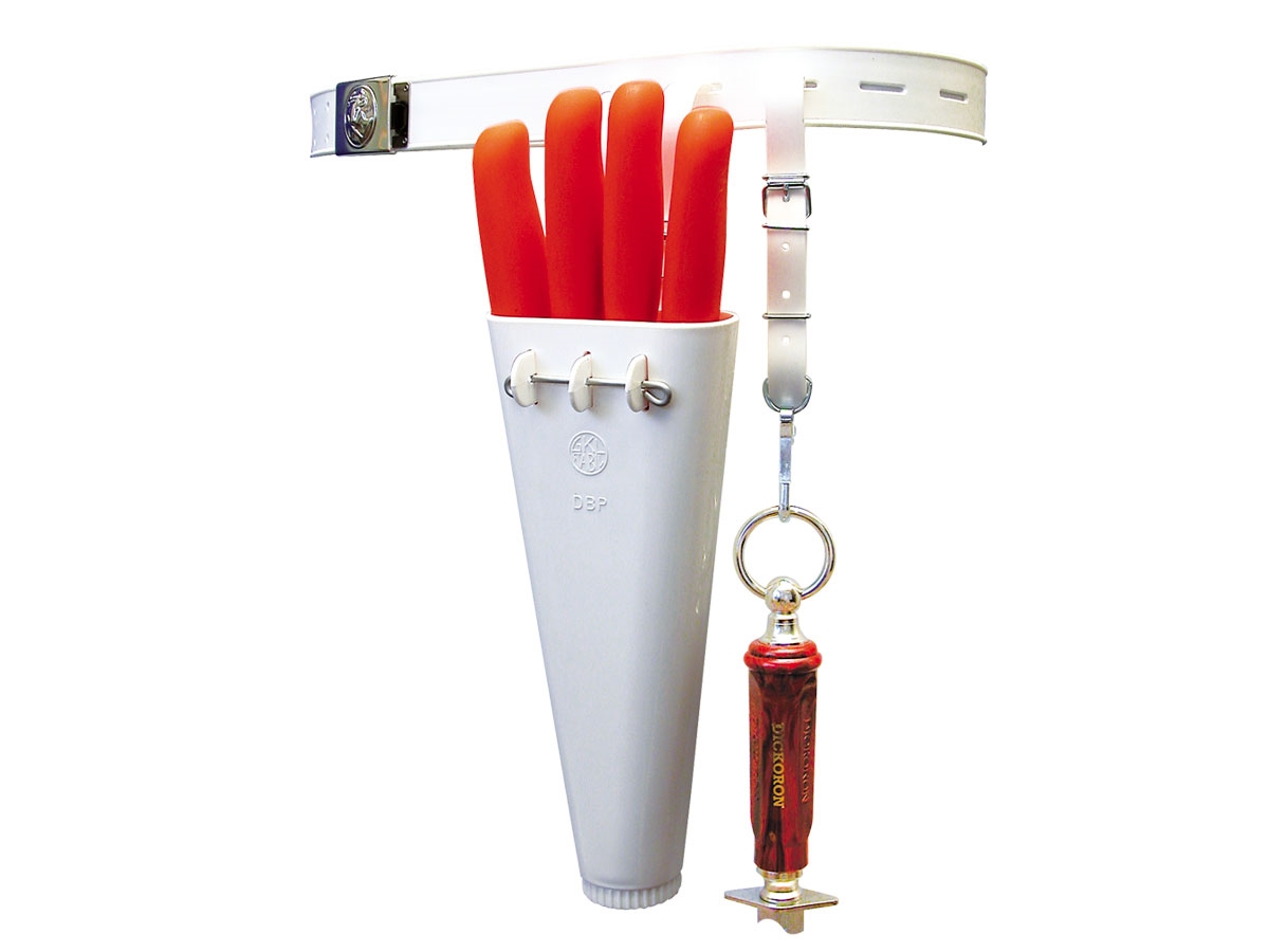 Può contenere 4 coltelli (esclusi) ed ha una cintura con un gancio per l'acciarino.