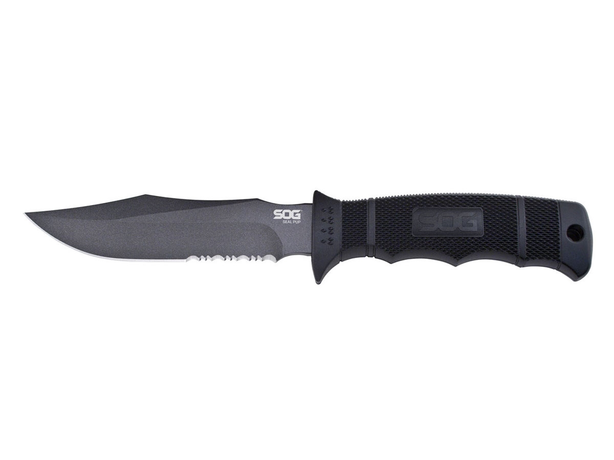 Come il suo fratello maggiore, il SEAL Pup ha una lama parzialmente seghettata che è verniciata a polvere per ottenere una bassa riflessione e resistenza alla corrosione.  Il manico  leggero in nylon rinforzato con fibra di vetro (GRN) presenta un motivo a diamante rialzato per garantire una presa sicura in caso di condizioni atmosferiche avverse.