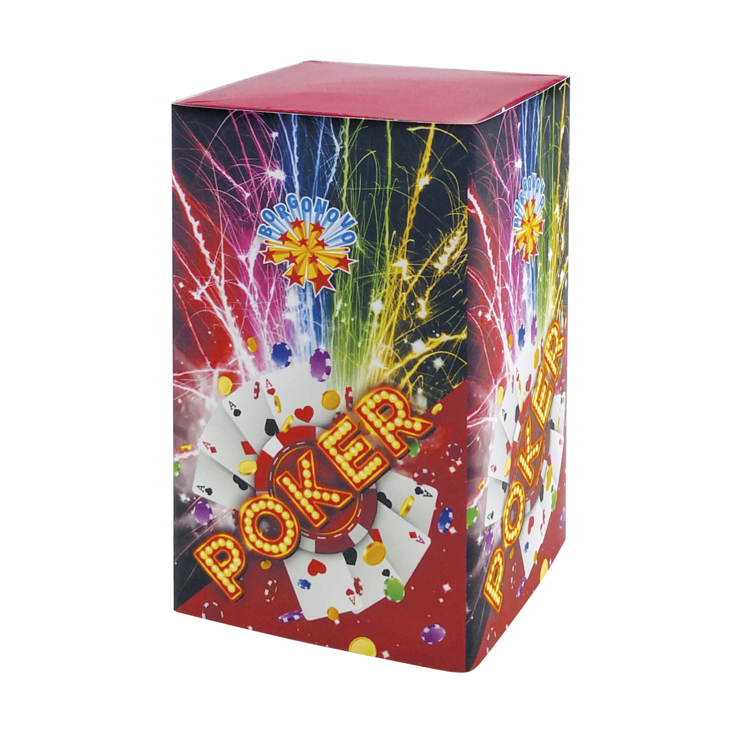 La Fontana Poker - 0270A di Borgonovo è l'ideale per portare un'esplosione di colori e luci a qualsiasi festa o evento speciale. Con una serie di effetti visivi accattivanti e una sequenza variopinta, questa fontana garantisce un’atmosfera festosa e coinvolgente.• Effetti Visivi Colorati:Rosso con Fiori Argento: Una combinazione di rosso intenso arricchito da splendidi fiori d'argento.Blu con Aghi d'Oro: Un effetto scintillante che mescola il blu con gli aghi dorati, creando un contrasto di grande impatto.Verde con Crisantemi Argento: Un effetto elegante che abbina il verde brillante ai crisantemi argentati.Finale Tricolore: Uno spettacolare finale con una combinazione di rosso, verde e viola accompagnato da un vivace effetto crepitante (cracker).• Categoria di Sicurezza: Classificata come Categoria EU F2, questa fontana è sicura per l'uso in spazi esterni, in linea con le normative europee di sicurezza.• Specifiche Tecniche:Massa Attiva: 120 grammiLa Fontana Poker - 0270A è perfetta per aggiungere un tocco di originalità e divertimento a ogni celebrazione, con un gioco di luci e colori che catturerà l’attenzione di tutti.