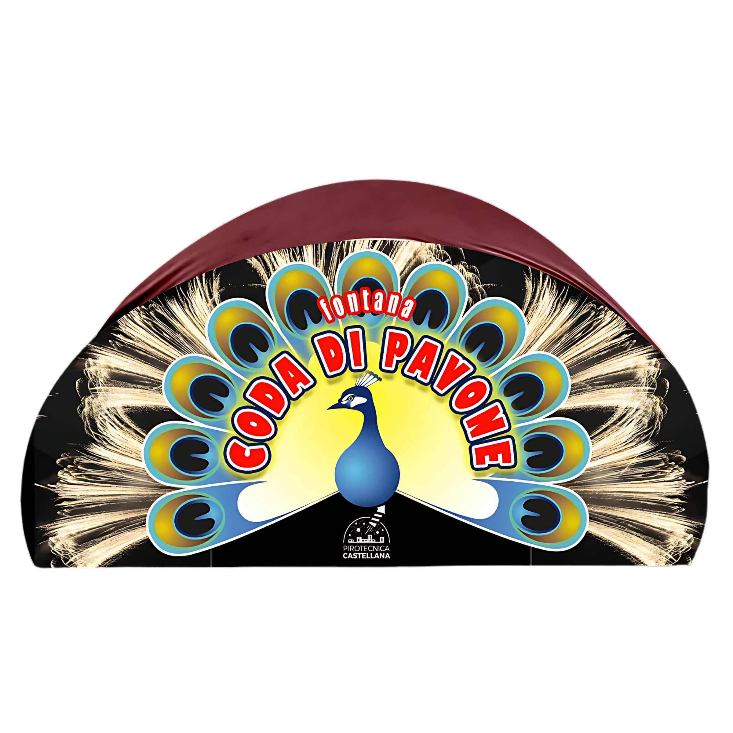 La Fontana Coda di Pavone - PC86252 è una fontana pirotecnica dall'effetto sorprendente, progettata per imitare l’elegante apertura della coda di un pavone. Questa fontana offre una sequenza di effetti luminosi e colori intensi che rendono ogni celebrazione unica e spettacolare.• Effetti Visivi Magici:- Fontana Centrale a Quattro Stadi: Una fontana che si apre progressivamente, culminando in un allargamento a ventaglio che simula la coda di un pavone.- Effetti di Luce: Lampeggiante rosso, crisantemo bianco, perla blu e crisantemo oro silk, accompagnati da fiocchi bianchi e crocette verdi e blu, per un effetto finale mozzafiato.• Categoria di Sicurezza: Appartenente alla Categoria EU F2, questa fontana è adatta per l'uso all'aperto in ambienti controllati, garantendo la sicurezza degli spettatori.• Specifiche Tecniche:Dimensioni: Lunghezza 300 mm x Altezza 150 mmMassa Attiva: 120 grammiLa Fontana Coda di Pavone - PC86252 è l'ideale per eventi speciali e feste che richiedono un tocco scenografico. I suoi colori brillanti e il design a ventaglio finale renderanno memorabile ogni occasione.