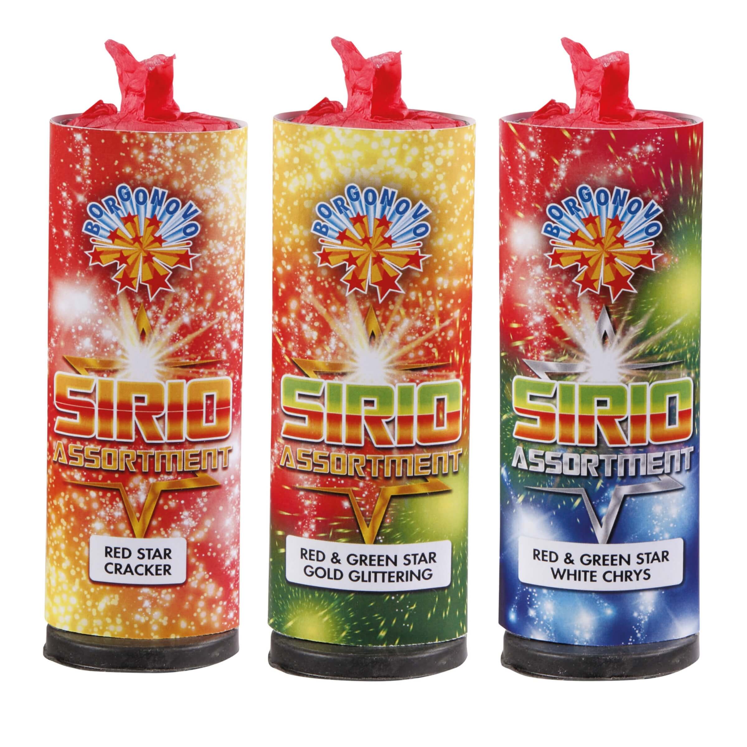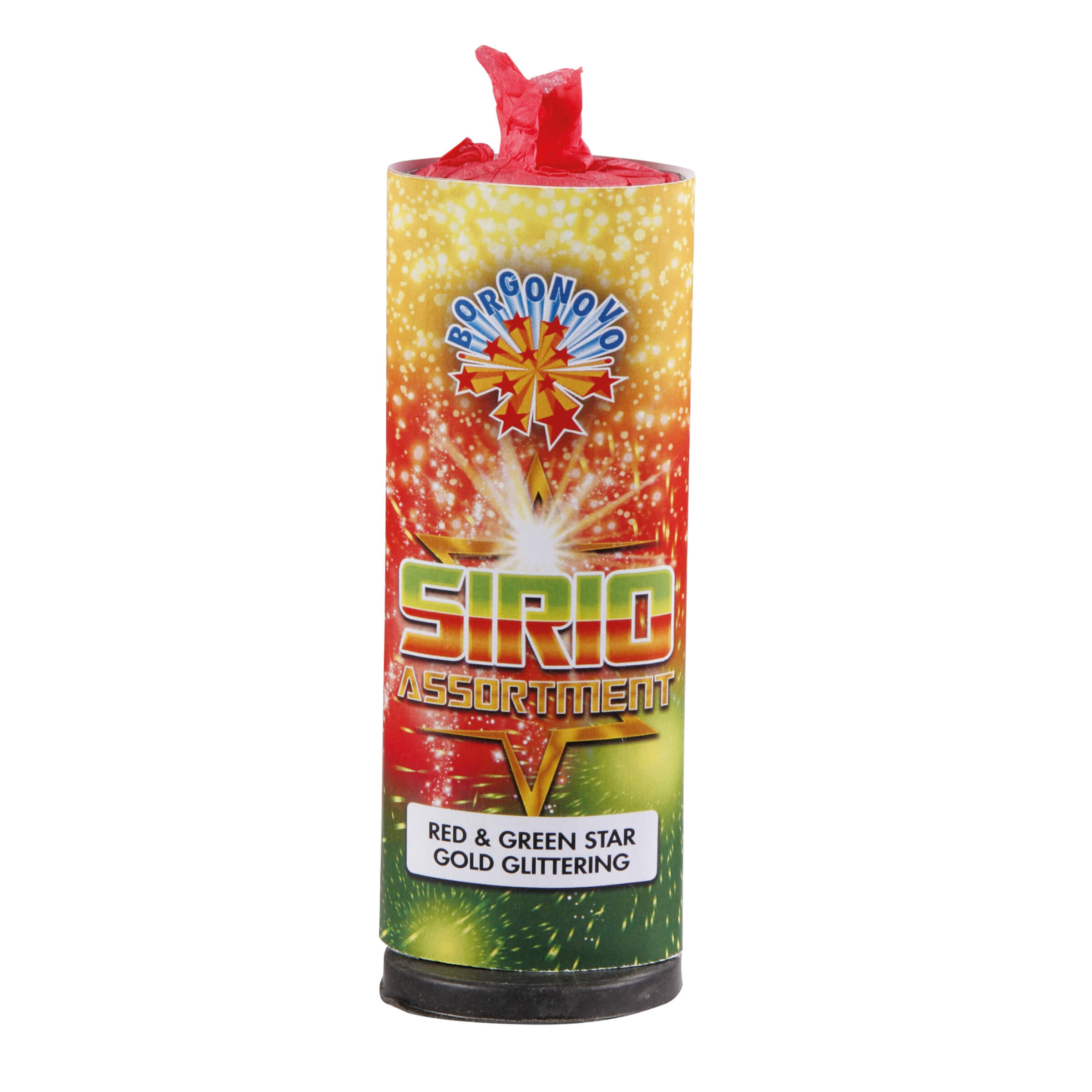 Il set di Fontane Sirio Assortment Borgonovo è una raccolta di fontane pirotecniche che offre una varietà di effetti spettacolari, ideali per rendere indimenticabile ogni celebrazione.• Composizione del set:-2 pezzi Red Star Cracker: Fontane con effetti in rosso e cracker, accompagnati da un vivace fischio.-1 pezzo Red e Green Star Gold Glittering: Una combinazione di colori rosso e verde, arricchita da scintillanti effetti dorati e un fischio penetrante.- 1 pezzo Red e Green Star White Chrys: Effetti in rosso e verde, con un elegante crisantemo argentato e fischio.• Dimensioni compatte: Ogni fontana ha una altezza di 100 mm e una larghezza di 34 mm, rendendole ideali per un facile posizionamento e maneggevolezza.• Massa attiva di 52 g: Conformi alle normative europee, queste fontane della categoria EU F2 offrono un'esperienza pirotecnica sicura e spettacolare.Le Fontane Sirio Assortment Borgonovo sono perfette per chi desidera un'esplosione di colori e suoni, offrendo una varietà di effetti per rendere ogni evento unico e indimenticabile.