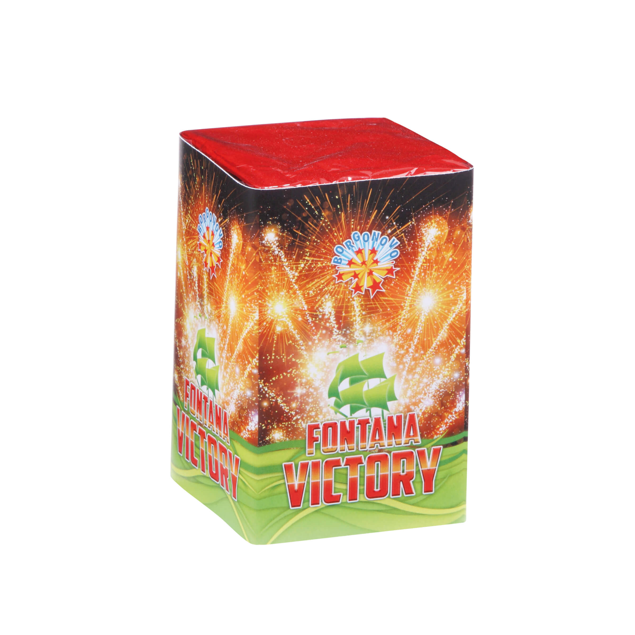 Le Fontane Victory Borgonovo offrono uno spettacolo pirotecnico straordinario con una sequenza di effetti a due fasce, garantendo un'esperienza visiva affascinante e variegata per ogni celebrazione.• Effetti visivi sorprendenti:- Stelle rosse, crisantemo bianco, stelle verdi e fiori cracker- Stelle verdi, crisantemo bianco, stelle blu e fiori cracker• Dimensioni compatte e d’impatto: Con una altezza di 100 mm e una larghezza di 60 mm, queste fontane compatte garantiscono un effetto visivo coinvolgente e di grande impatto.• Massa attiva di 30 g: Appartenenti alla categoria EU F2, queste fontane sono ideali per l’utilizzo in spazi all'aperto e conformi alle normative di sicurezza europee.Le Fontane Victory Borgonovo sono perfette per aggiungere un tocco di colore e magia a ogni evento, con una combinazione unica di stelle e fiori scintillanti in sequenza.