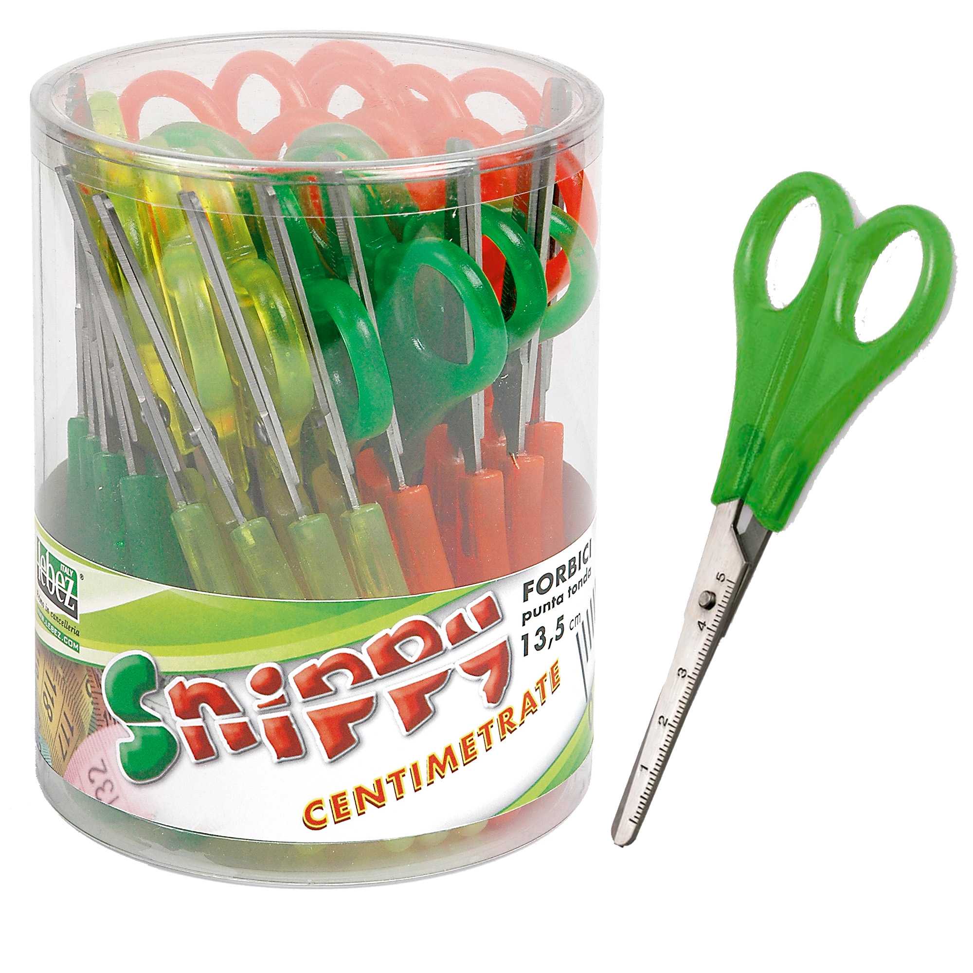 Barattolo 24 forbici SNIPPY centimetrate 13,5cm punta tonda LEBEZ
