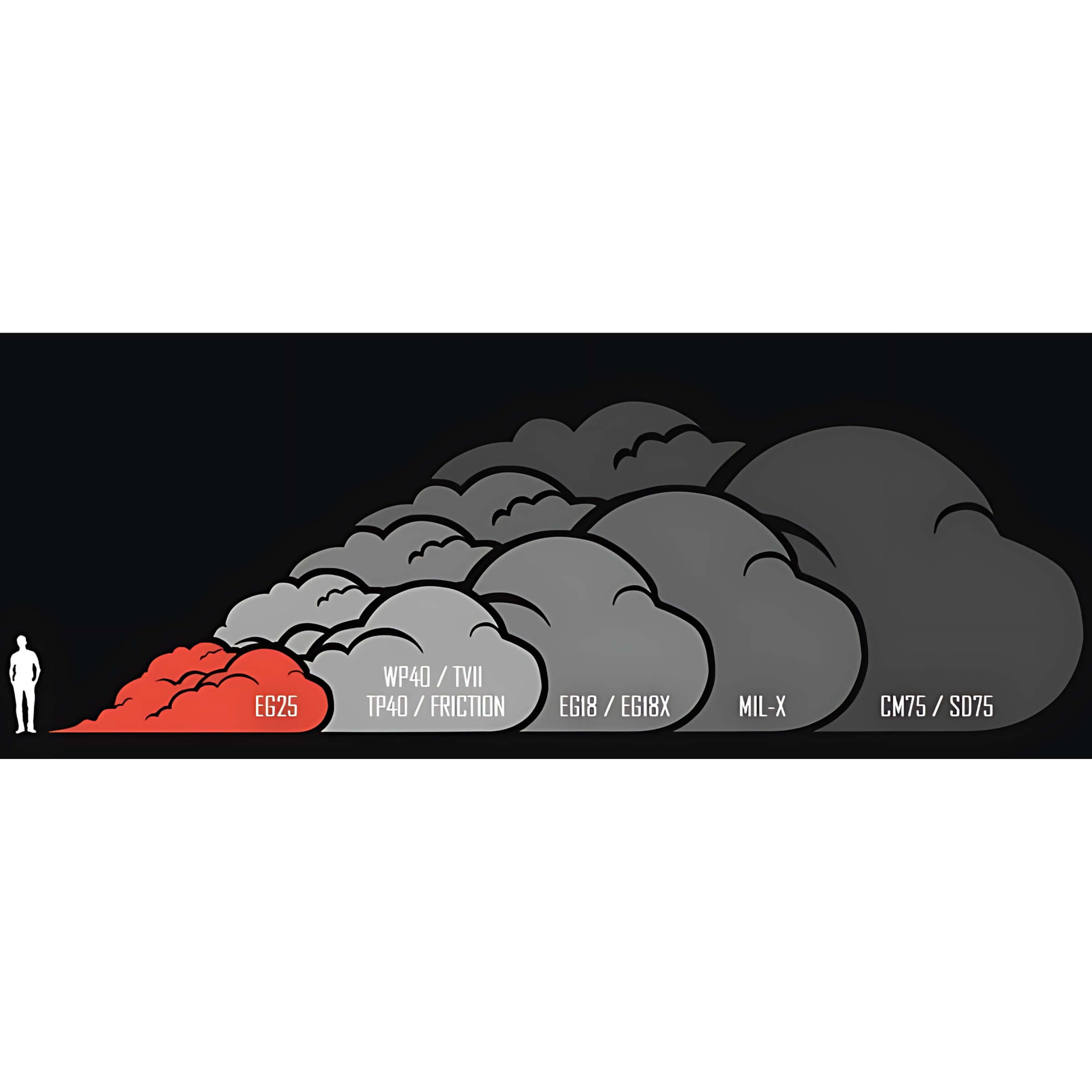 Impatto Ambientale: Progettato con coloranti atossici e composizioni di fumo più avanzate e pulite rispetto alle unità militari attuali. Il EG25 è biodegradabile al 99,5% e ha una bassa emissione di CO2.